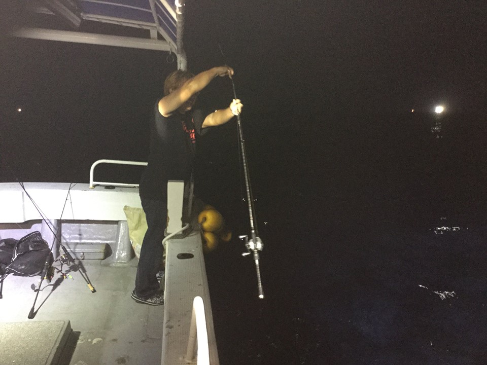 まだ明るい17時ごろ出船してポイントへ行く途中、鳥山を発見してキャスティングやジギングが突如開始(笑)