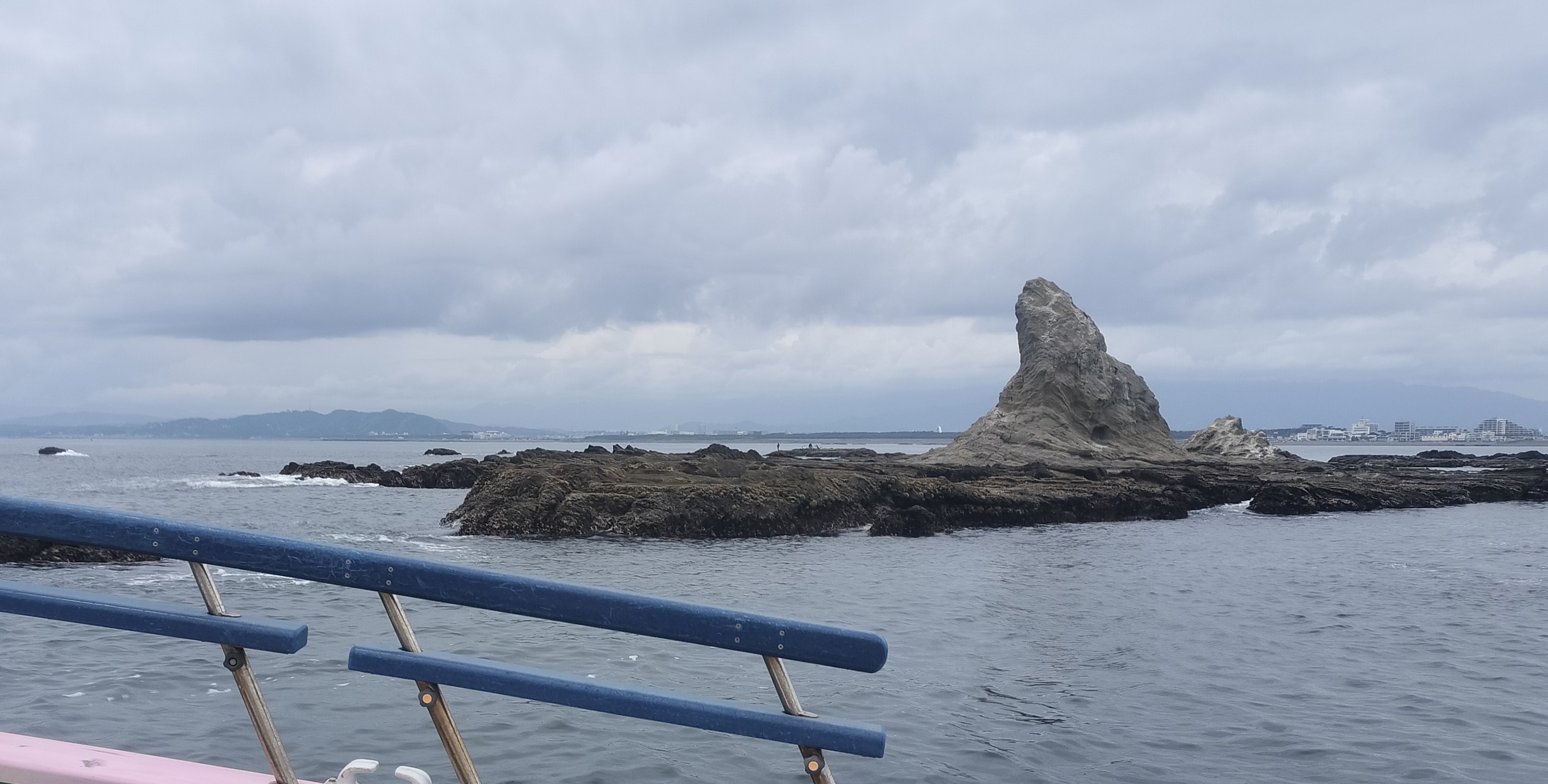 そうして何名かツ抜けした頃合いを見て船長は大きく舵を切り型狙いで65mダチの魚礁も流してみるが、ヒットするのは良型のサバやカサゴで2流しして烏帽子岩周りにリターン。