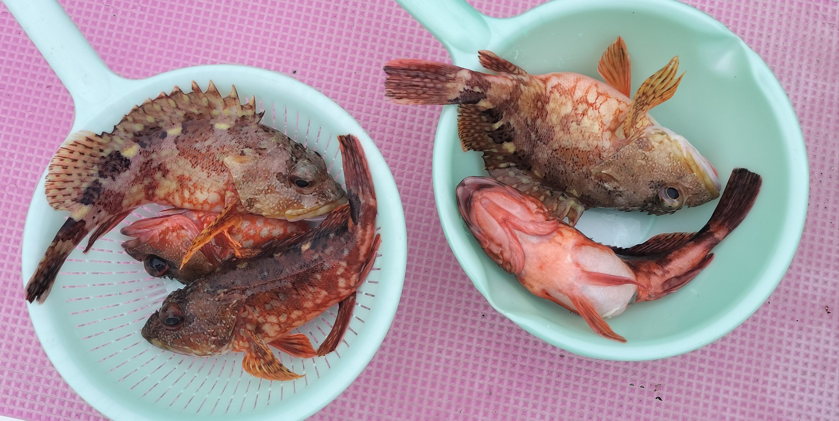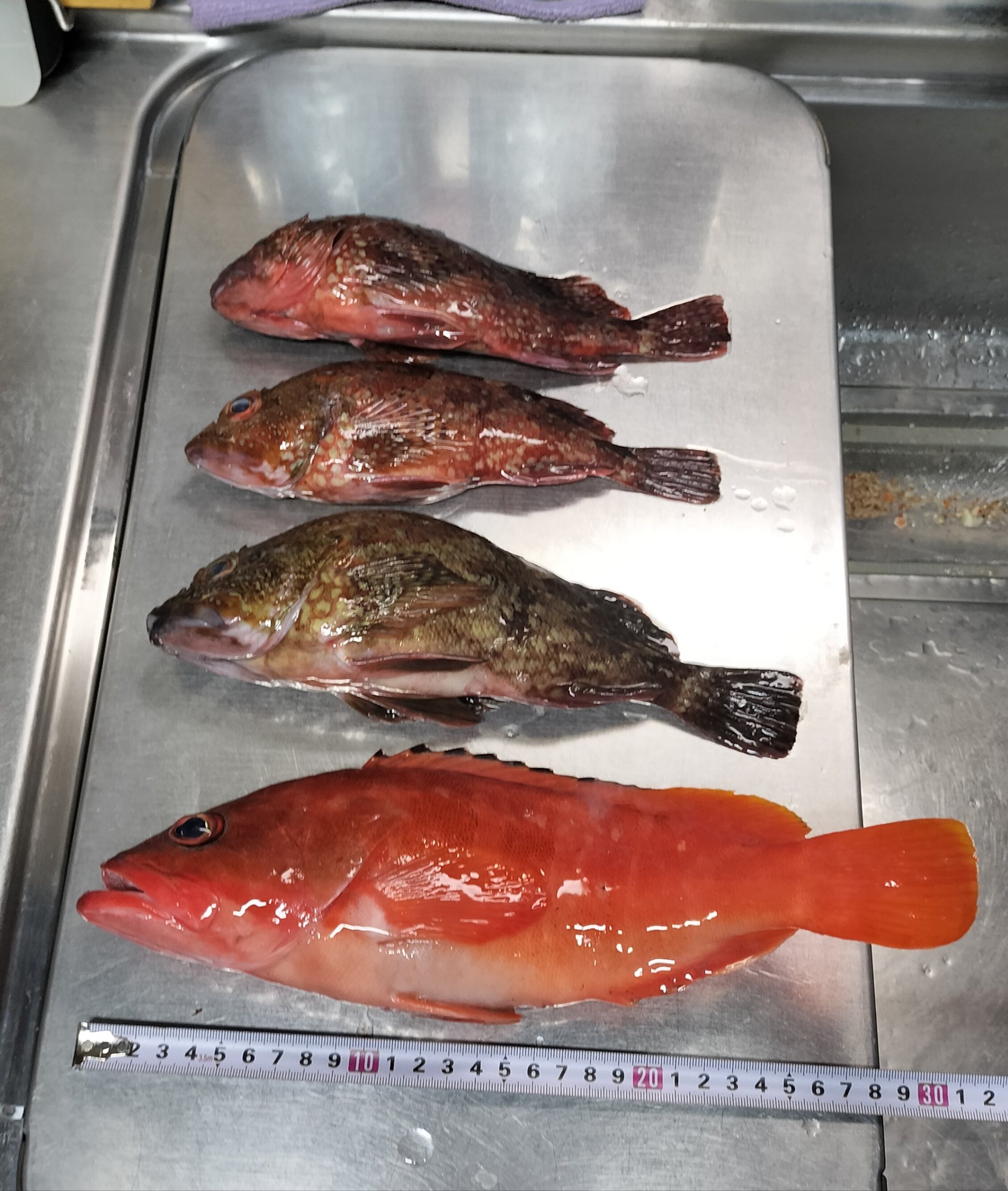 船中でアカハタや良型のカサゴが姿を見せ、自分もキープサイズのカサゴを2匹追加して13時にストップフィッシング。