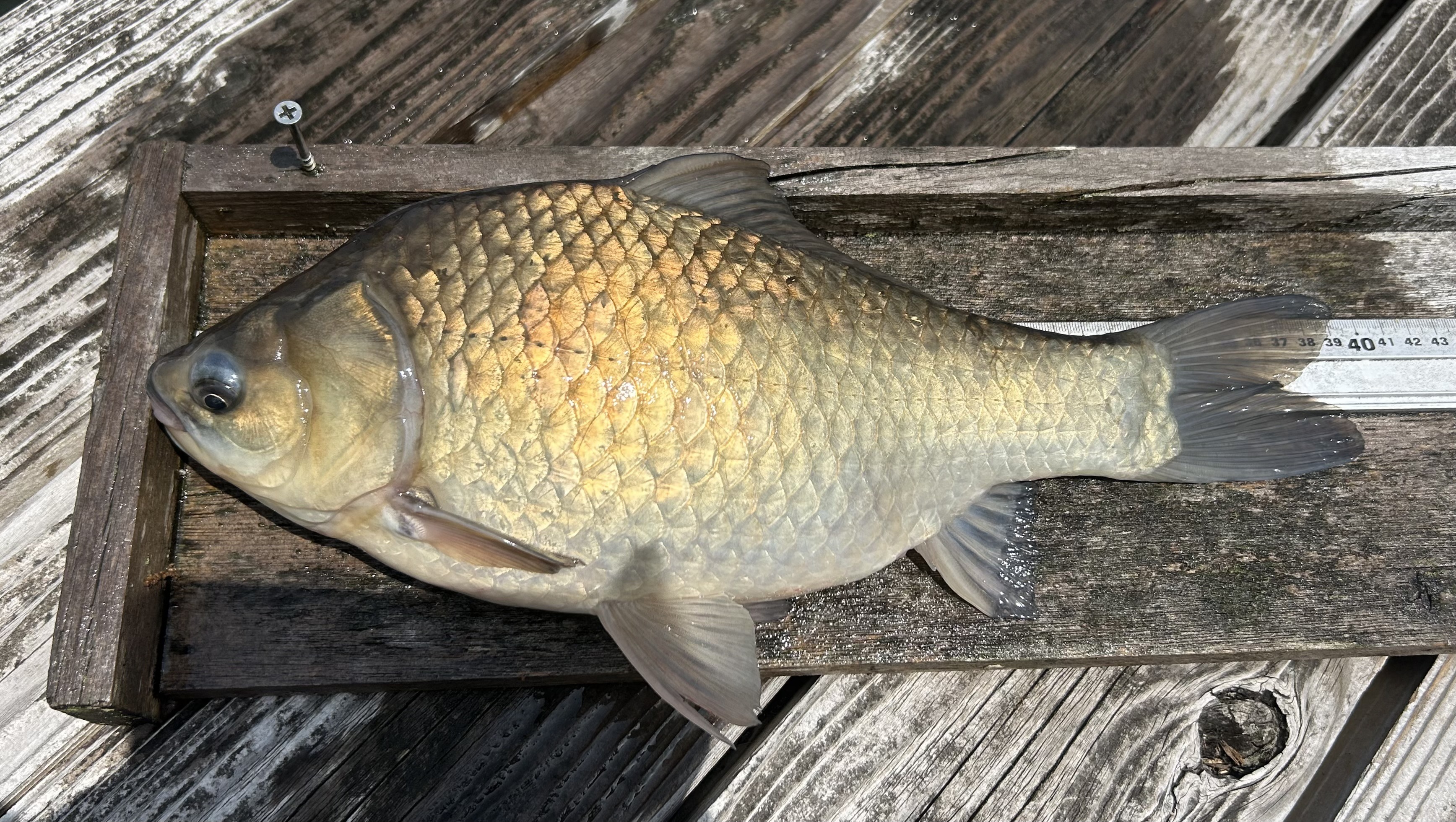 同行していた方はヘラブナ釣りの例会にも参加されるような人ですが、15尺竿での深ダナからまるまる太った40cmの立派な魚を引きずり出していました!さすがです!