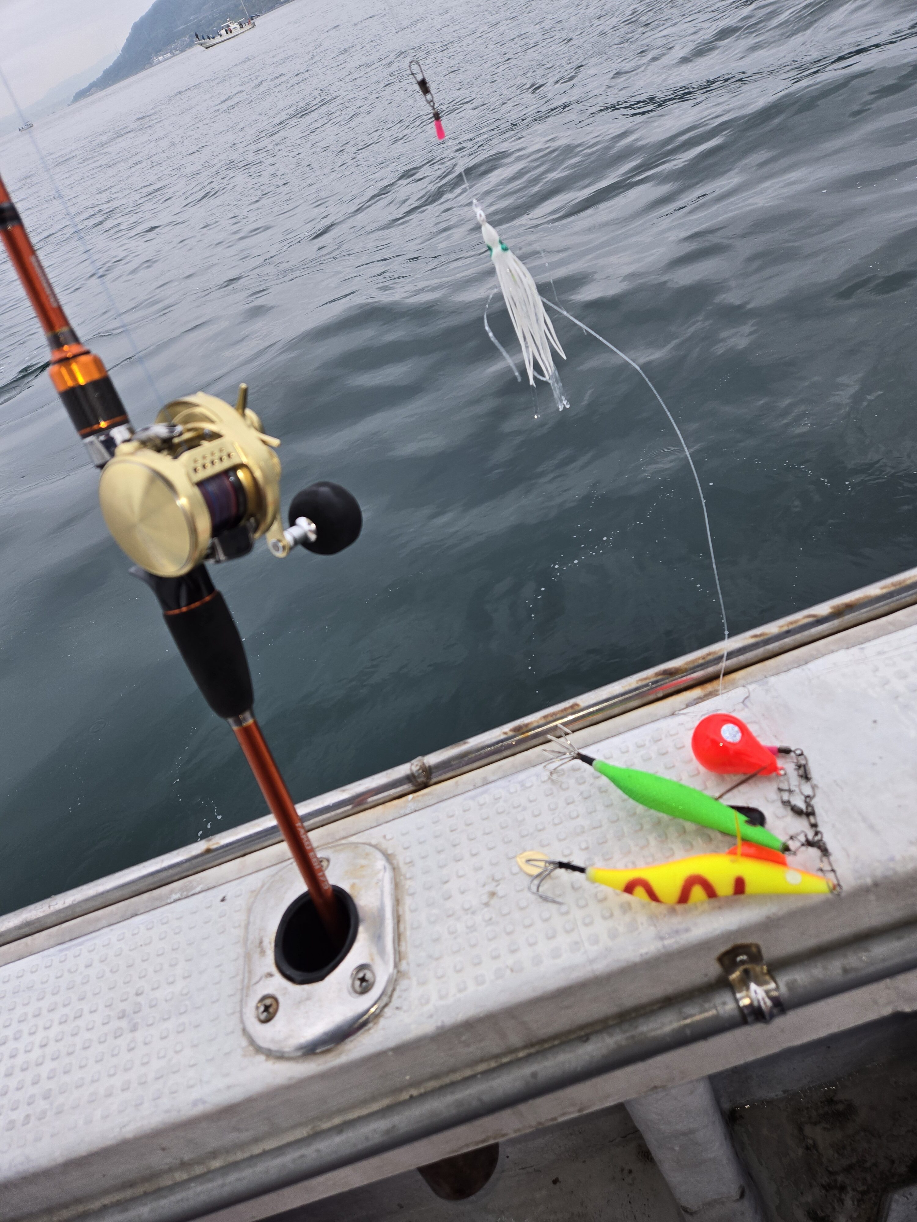 堺の出島漁港から堺店スタッフの鍾さんと田中麗香さんと一緒にジャックポットさんで明石までタコ釣りに行ってきました。AM4時半頃出発し約1時間ほどで明石のタコ釣りポイントに到着しました 去年に1度タコ釣りを経験し、今回は2回目で前回よりも上手にできるかな?と意気込んでいましたが、結果はボウズでした…😞