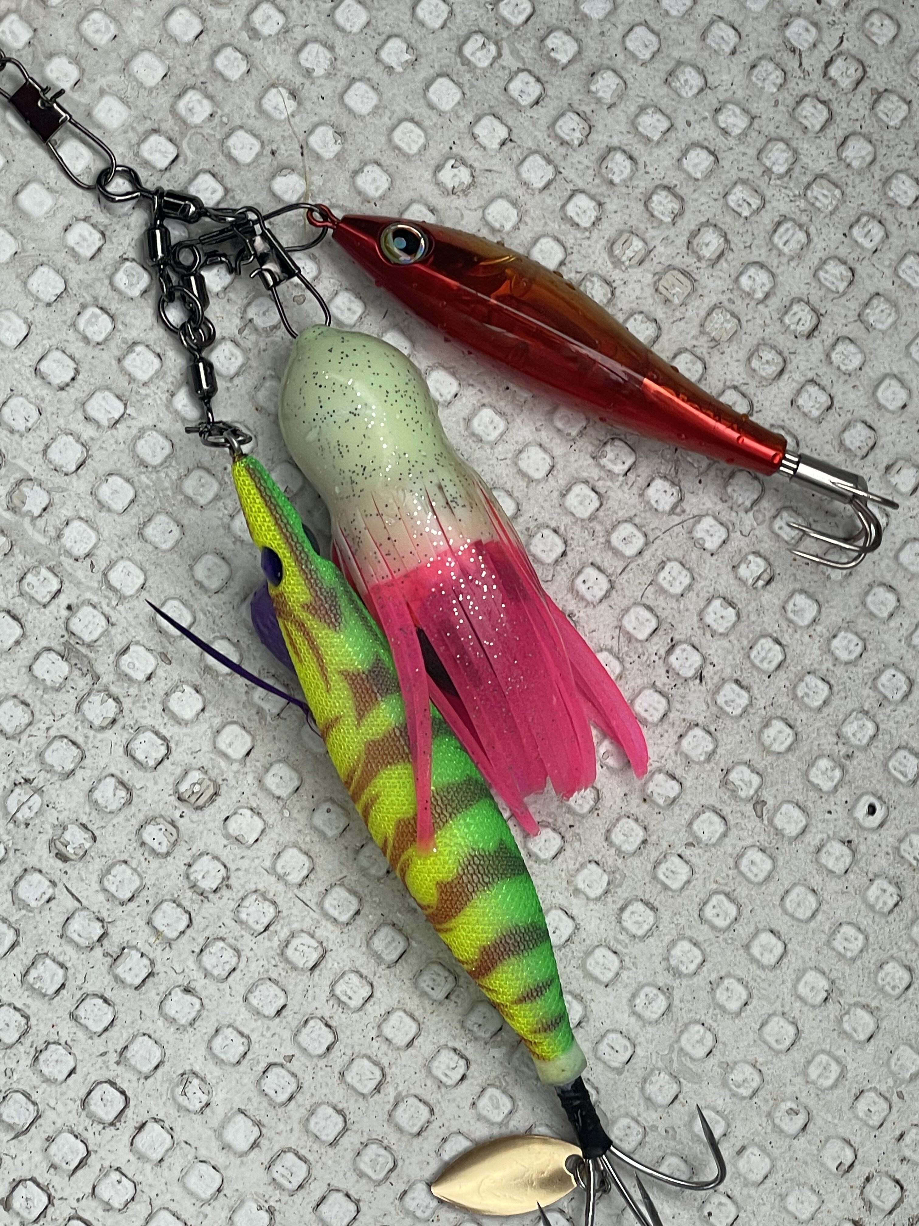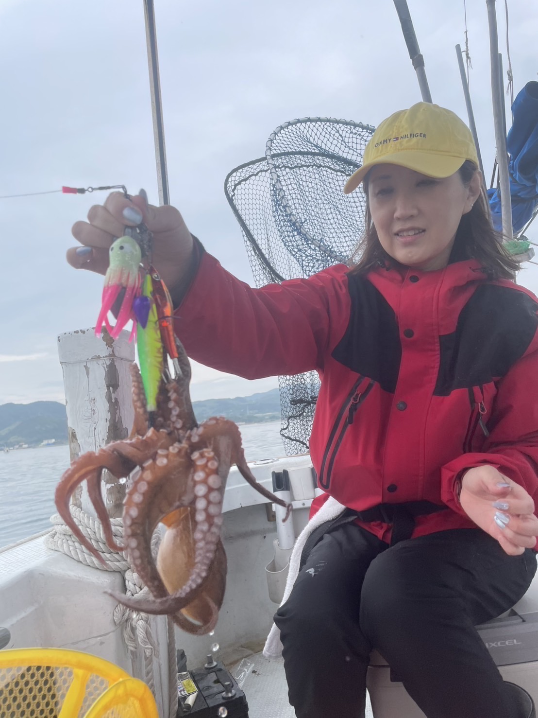 解禁になって約1ヶ月… やっと釣行へ行きました! 今回お世話になったのは、堺の出島から出船しているジャックポットさんです! 船長さんは、堺店でお買い物もして下さる方です。 4時半に出船して明石までレッツゴー🛳🌊 しばらく走り…… ポイントへ。 カラーを迷いながらエギとスッテをセットして仕掛け投入。底まで落としてトントントントン叩いて しばらくステイ。誘ったりトントンしたり…… しばらく、その繰り返しでした。セットした仕掛けの色がアカン?! そんな事も考えて今回は ちょこちょことエギやスッテを交換しました! そして その時が…!! ん? 根がかってる? と思いながらリールを巻くと引っかかったように重いけど糸はゆっくりと巻けてる、って事は✨ タコでした🙌 その後 反応ない時間もありましたが 7杯釣れました🐙 生憎の雨でしたが またタコ釣行したーい😊