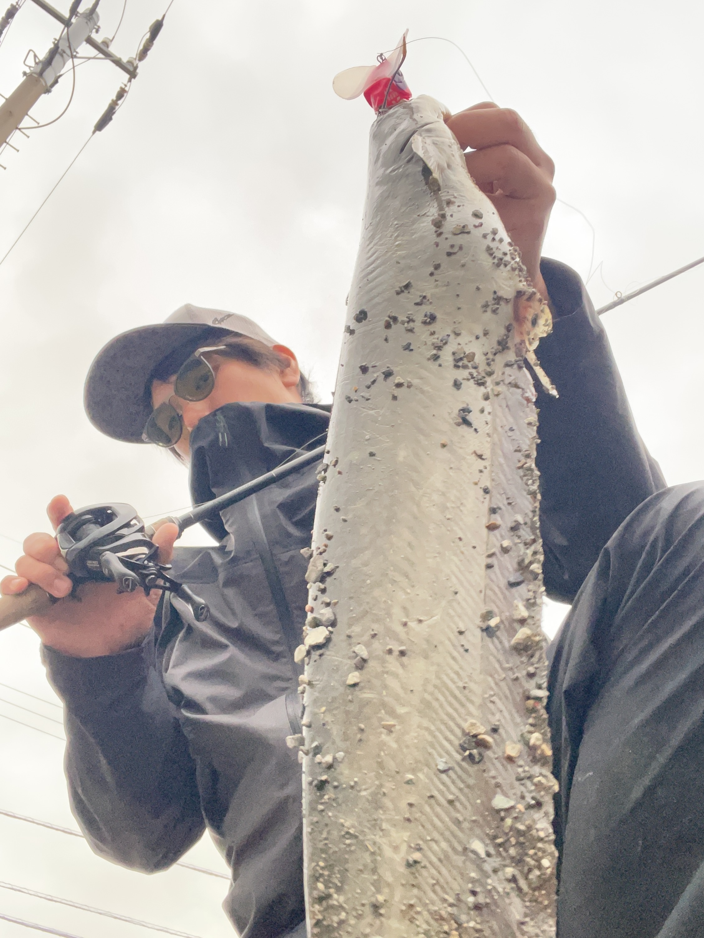 スレていないポイントなので、まずは土管の中のナマズに気づかせるため、最大火力のポンパドールJr.鯰カスタムを投入!
