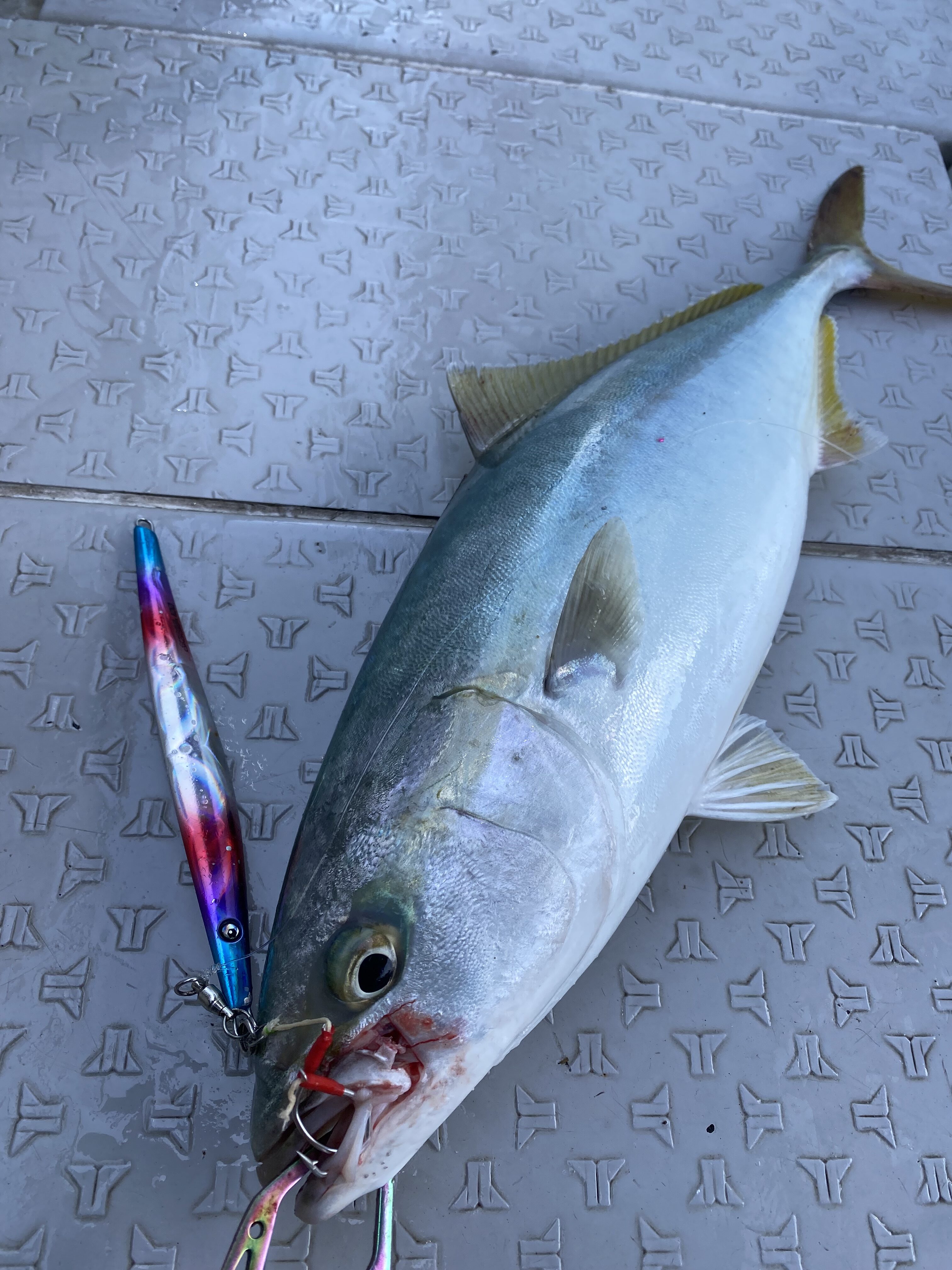 巻いて止めてのストップアンドゴーでヒット‼️サイズはハマチサイズでしたが価値ある1匹‼️