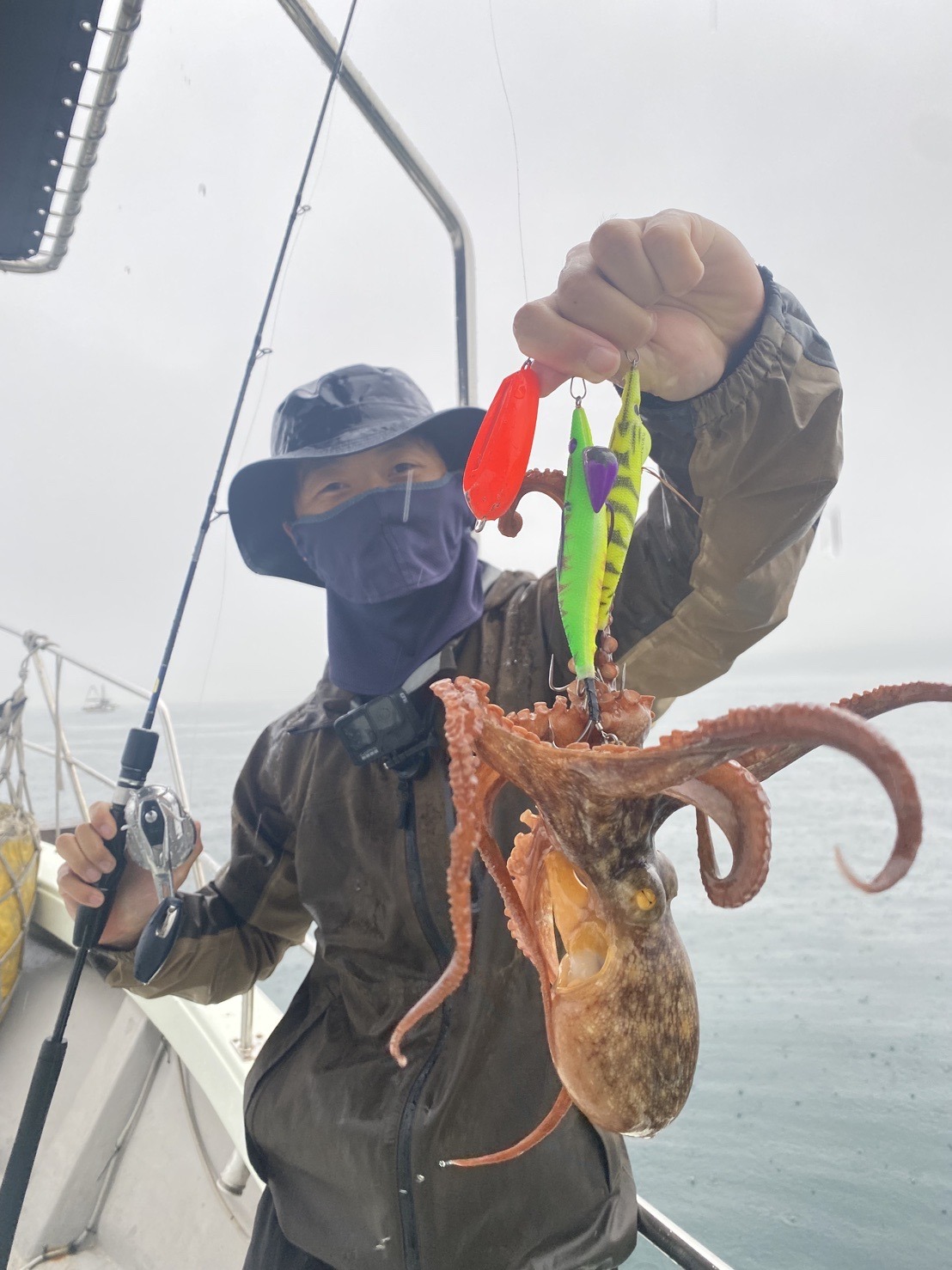 1時間半と少しのタコ釣行でした。ポイント到着後の束の間、いきなりヒット‼️