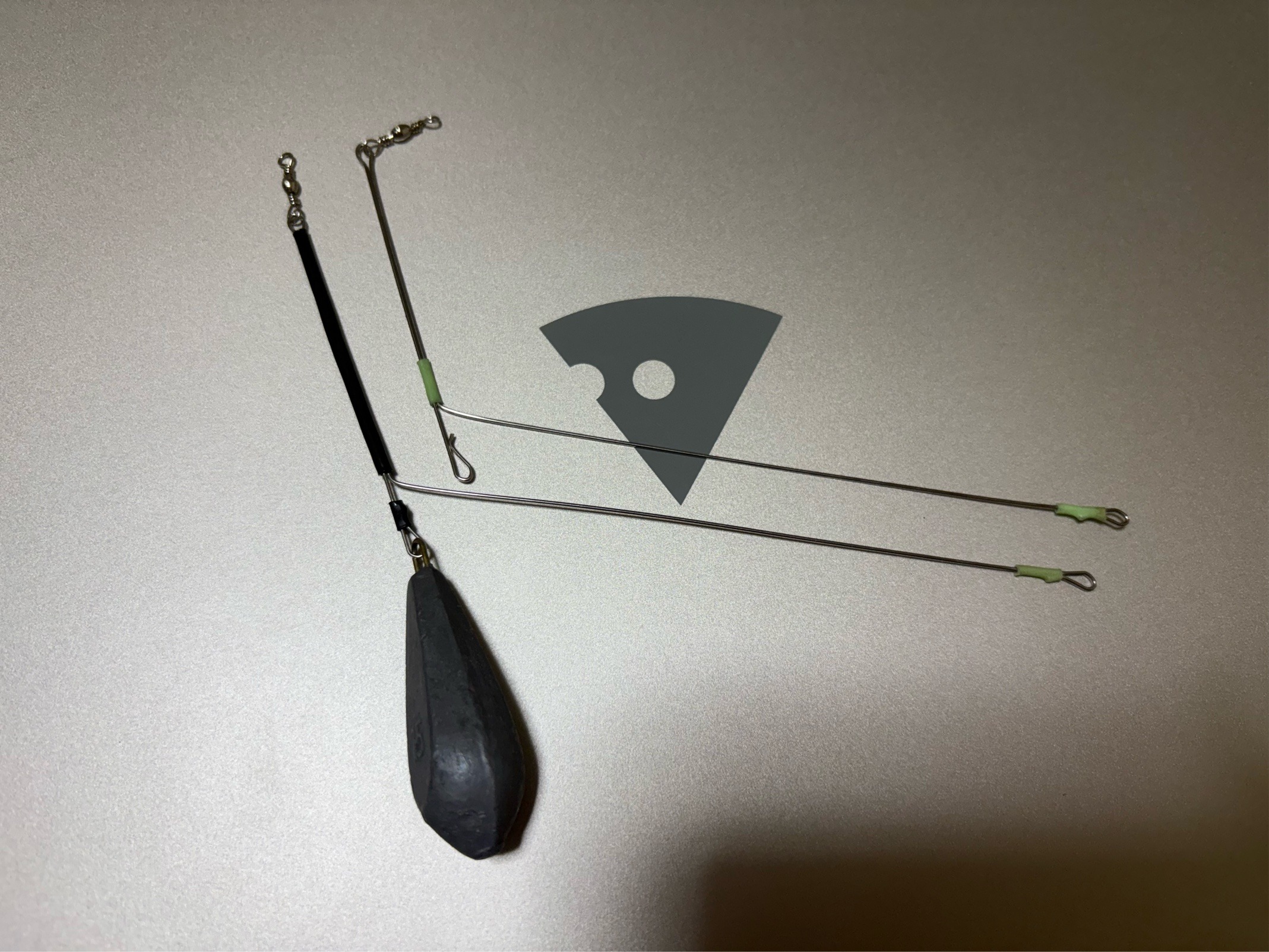 天秤は平森プレスさんのものがシンプルでオススメです! シンカー装着部にスナップなどもなく、ハリスが巻き付く可能性のあるバネの固定でもなく、シンカーをはめ込むだけの構造。