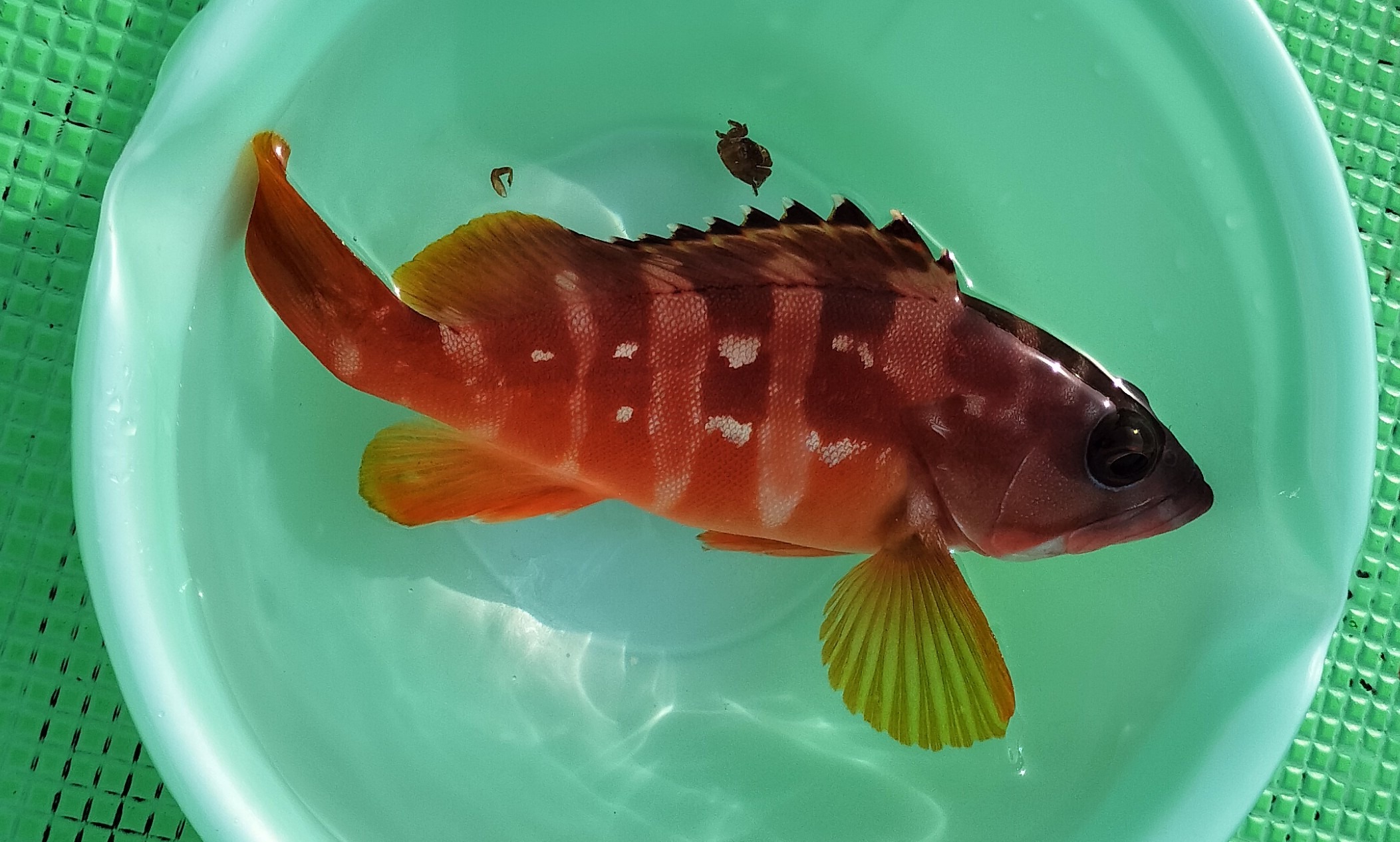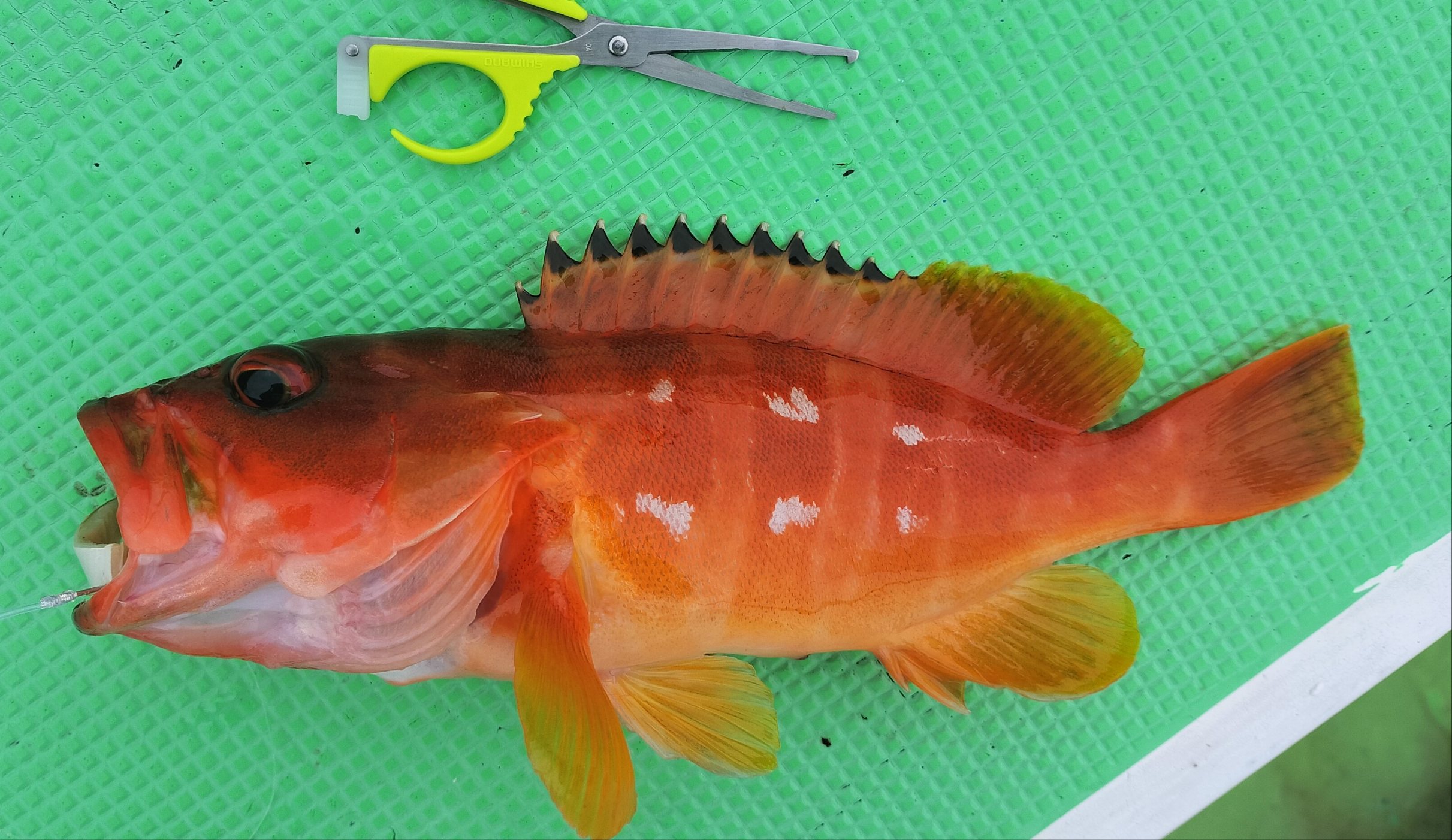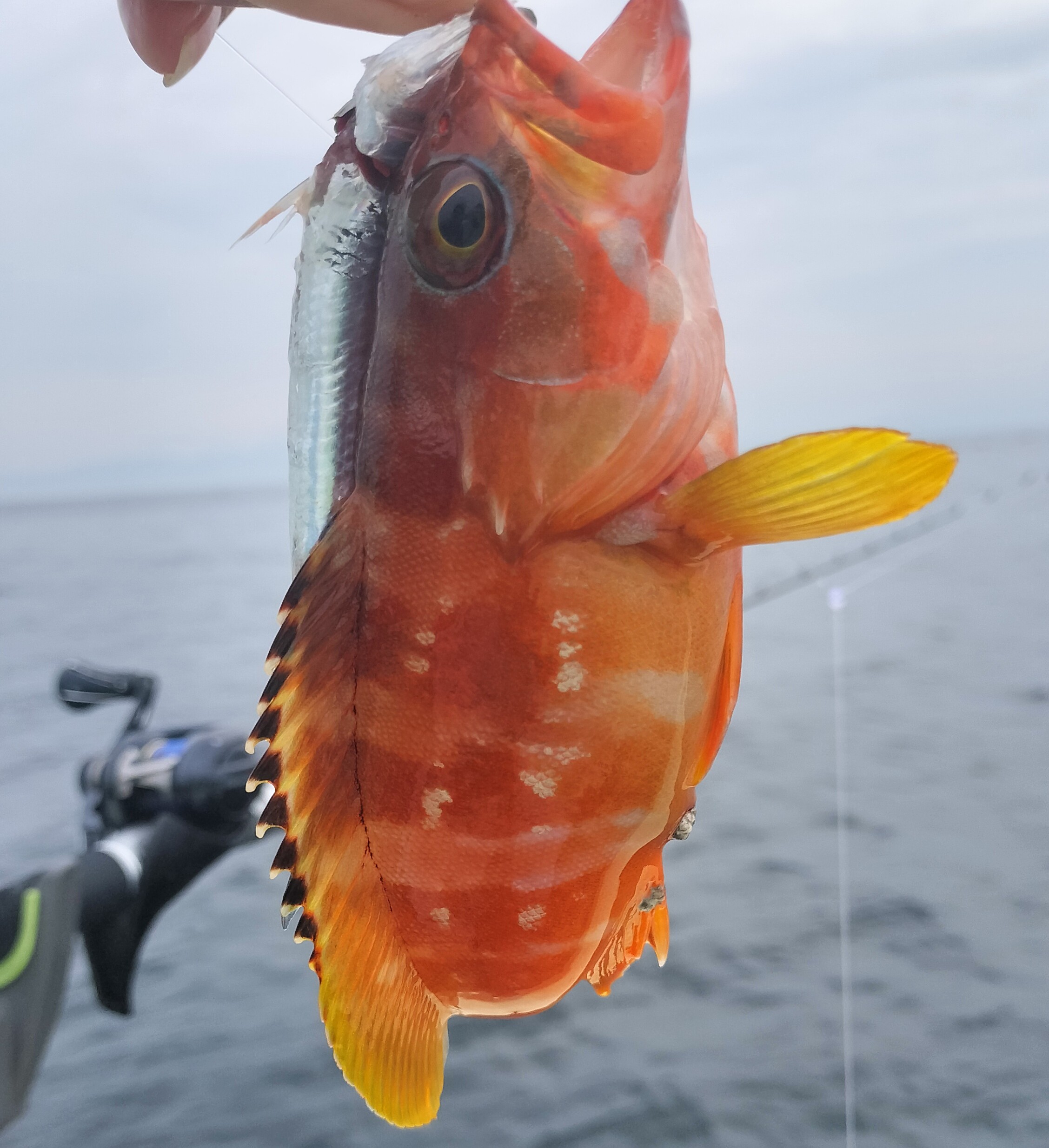 腰越沖の荒根では魚影も濃く、自分も25センチくらいのカサゴと30センチのアカハタを追釣して13時に沖上がりとなりました。