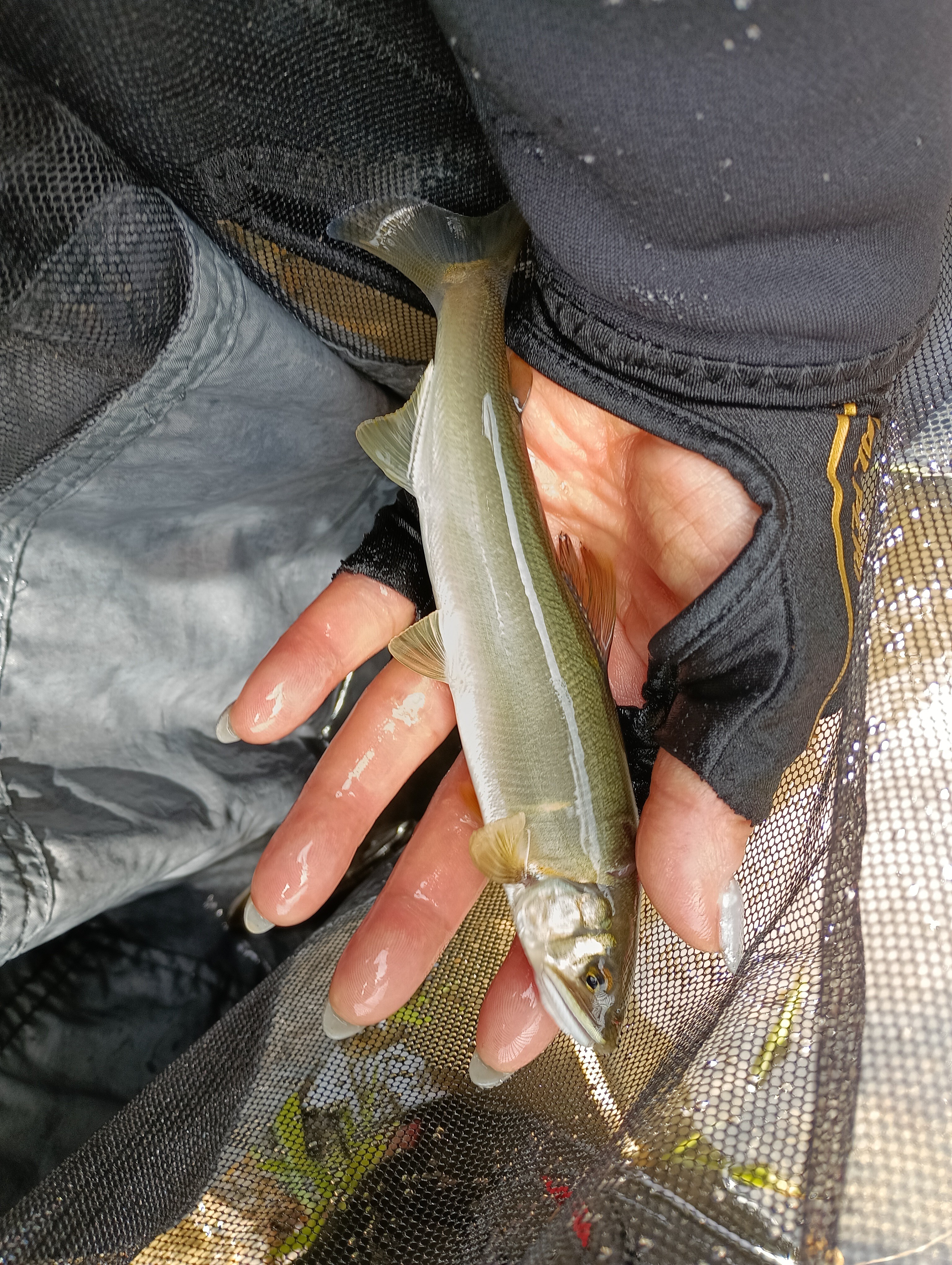 2025.06.03 印刷する 祝🎊美山解禁 魚種 アユ/鮎 サイズ 15~18センチ 数 鮎/7匹 釣り方 友釣り 場所 京都府 天候 晴れ時々雨 スタッフ 平川 葉子 店舗 堺店 釣行日 2025.05.31 コメント 5月31日は京都府南丹市の由良川上流の美山川の解禁日です。 堺店のお客様uさんとひまわり囮店で9時頃待ち合わせ。 気温も15度と低く水温は13度くらいだそうです。 久々の美山。皆さんお元気そうで良かったです。囮店でコーヒーをいただいて歓談すること2時間(笑) お客様uさんが来られ、歓談すること1時間(笑) ようやく準備に取りかかります。 大内山で一緒だったiくんは、ヒマワリより上流の月回しというポイントにいるそうです。 uさんは親戚の方が上江和で竿を出してるとのことで向かわれました。 私はnさん親子と支流の棚野川へ行くことに。 車で移動して四つ辻というところから竿を出します。 親子は早々に川へ入り、息子さんは下へ、お父さんは上へ行きました 私は少し遅れて上にあがりましたが先行者が居られ、少しあがった岩盤から竿を出します 川幅が狭いので、またまたシマノ友あゆ7mをチョイス。 1匹岩盤で魚が見えました。 仕掛けは水深も足首くらいなので015のフロロ。 針はがまかつの貫の変則チラシ7,0を脂ヒレに打ちます 泳がせますが、風が凄くて(風速6m)7mの竿でも立て竿が厳しいくらいでした💧 泳がすこと10分ほどで掛かりました。 それをつけてポロポロと掛かります。魚はあまり見えてないのですが、時折走ってるのが見える程度です 掛かるところが見えてなかなか楽しい。 群れ鮎っぽいのですがなぜか、殆ど背掛かり。(通常、群れ鮎の場合は口掛かりが多い) それもそのはず、ここ棚野川では今流行りの背掛かりdna鮎が放流されています 今日の解禁日は知り合いの方々がYouTubeの撮影に来られています(川合というポイントへ入られたようです。関西釣りチャンネルで検索してみてください) 6つほど泳がせて掛かったところで、上にいるお父さんからラインがきて、もっと上のほうがええよ。とのこと。 上のお客さんを超して、お父さんとところへいき、瀬をやってみます。 流れの強いところは不発で、弛みやプールになってるところで掛かりましたが さほど釣れず、雨も降ってきて、あまりにも寒いのであがることに。 ヒマワリに帰り、囮缶を浸けさせてもらって、河鹿莊という宿泊施設にお風呂に入りに行きました。 ここでは、ダイワのテスターのご夫婦がお風呂に来られていて、本流で25匹ほどだったようです。 かなり冷えて寒かったですがお風呂に長く入り、復活しました。 iくん達と合流し、晩ご飯を食べながら今日の釣果などを聞くと、eさんとiくんで50匹越え💧 相変わらず良く釣ります(笑) 棚野川の撮影隊は20匹~30匹だそうです。 さて、明日はどこへいこうかな♪ 使用した釣具 竿 シマノ友あゆ7m 仕掛け 自作 天井糸pe03 水中糸フロロ015中ハリス05 針 がまかつ貫 変則チラシ7,0