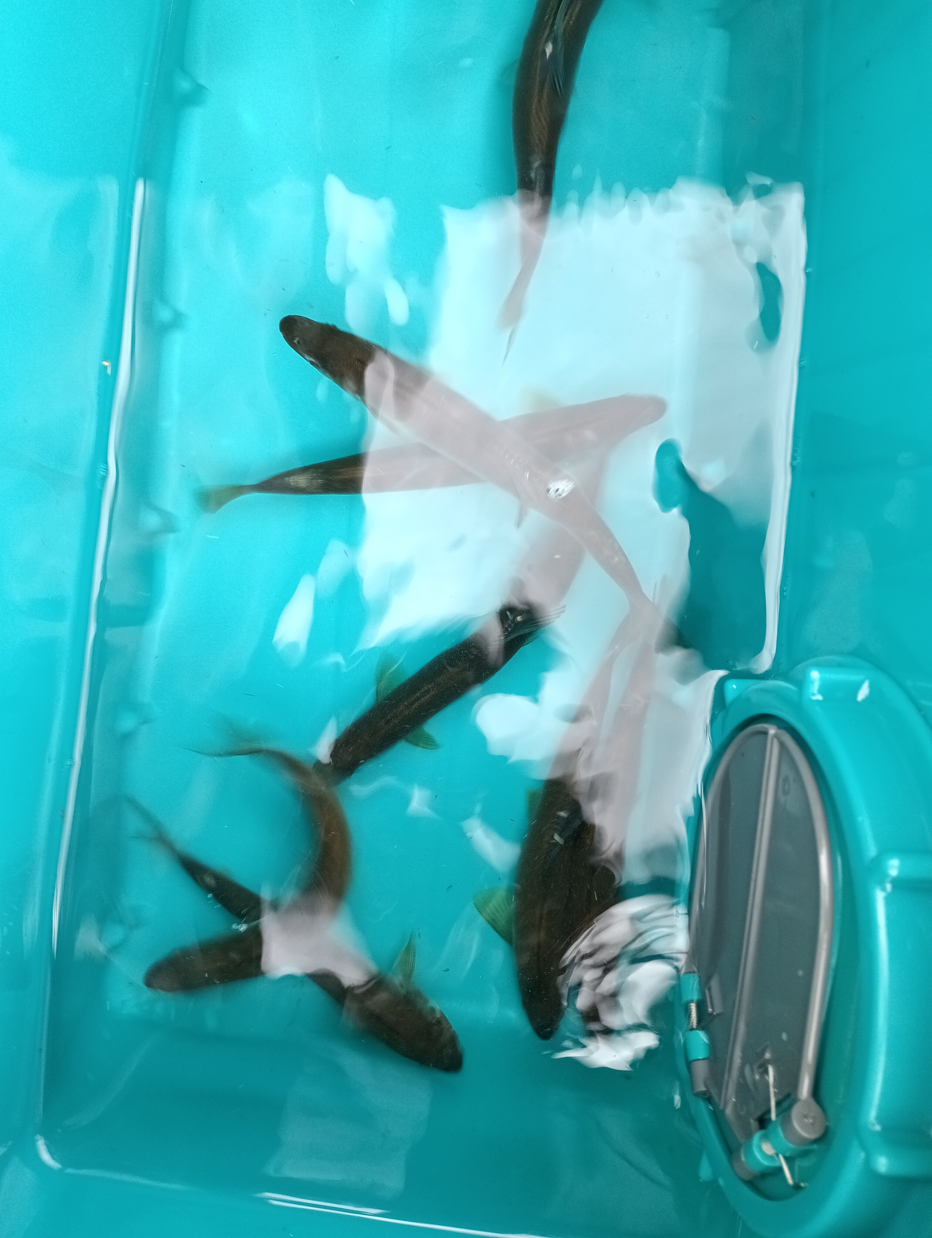 6つほど泳がせて掛かったところで、上にいるお父さんからラインがきて、もっと上のほうがええよ。とのこと。
