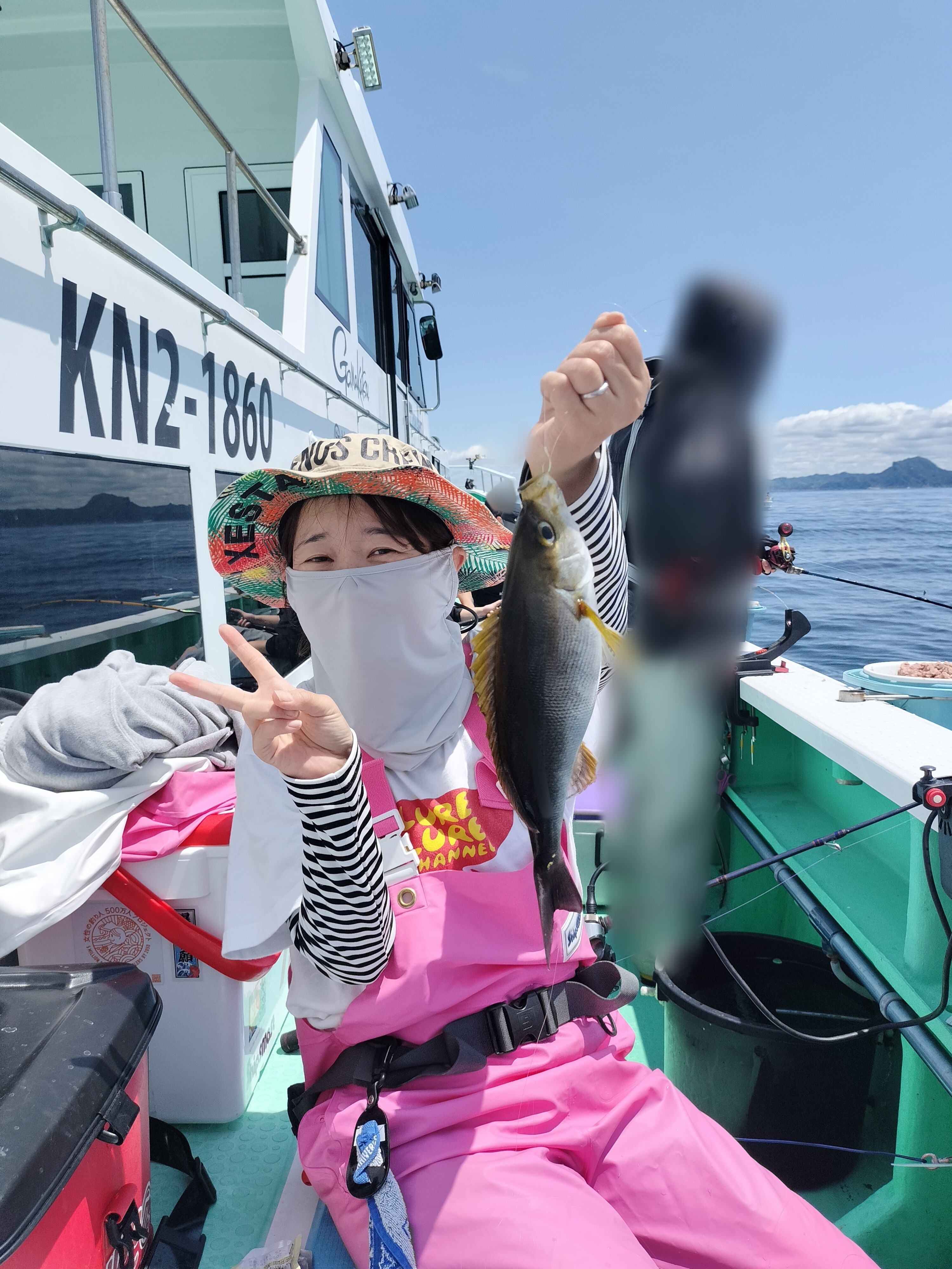イサキはいるぞ〜✨と俄然やる気が出たところで私にもアタリが!しかし、、ウリ坊サイズのチビちゃん🥲