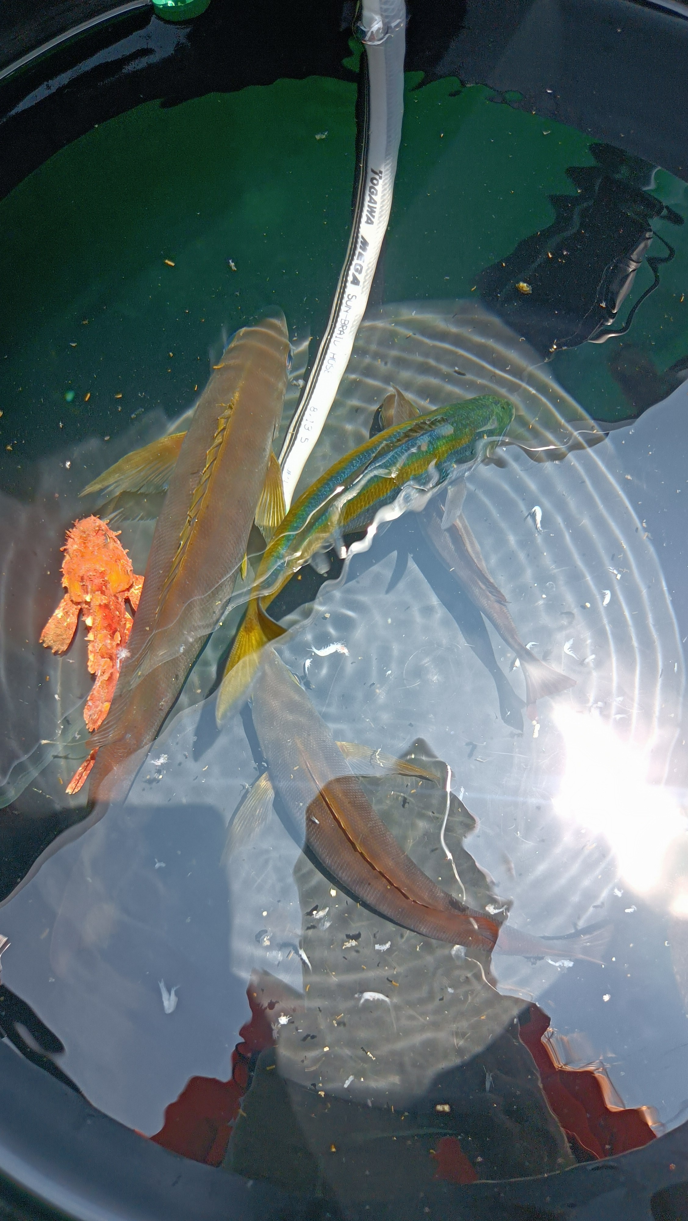 ガガッズズんっとアタリありで巻いてる途中にバレる…結局謎の魚にモヤモヤ。カリッと竿に伝導…カワハギかな?アタリはあるものの、その後は22cmイサキちゃんを追加で12時納竿。