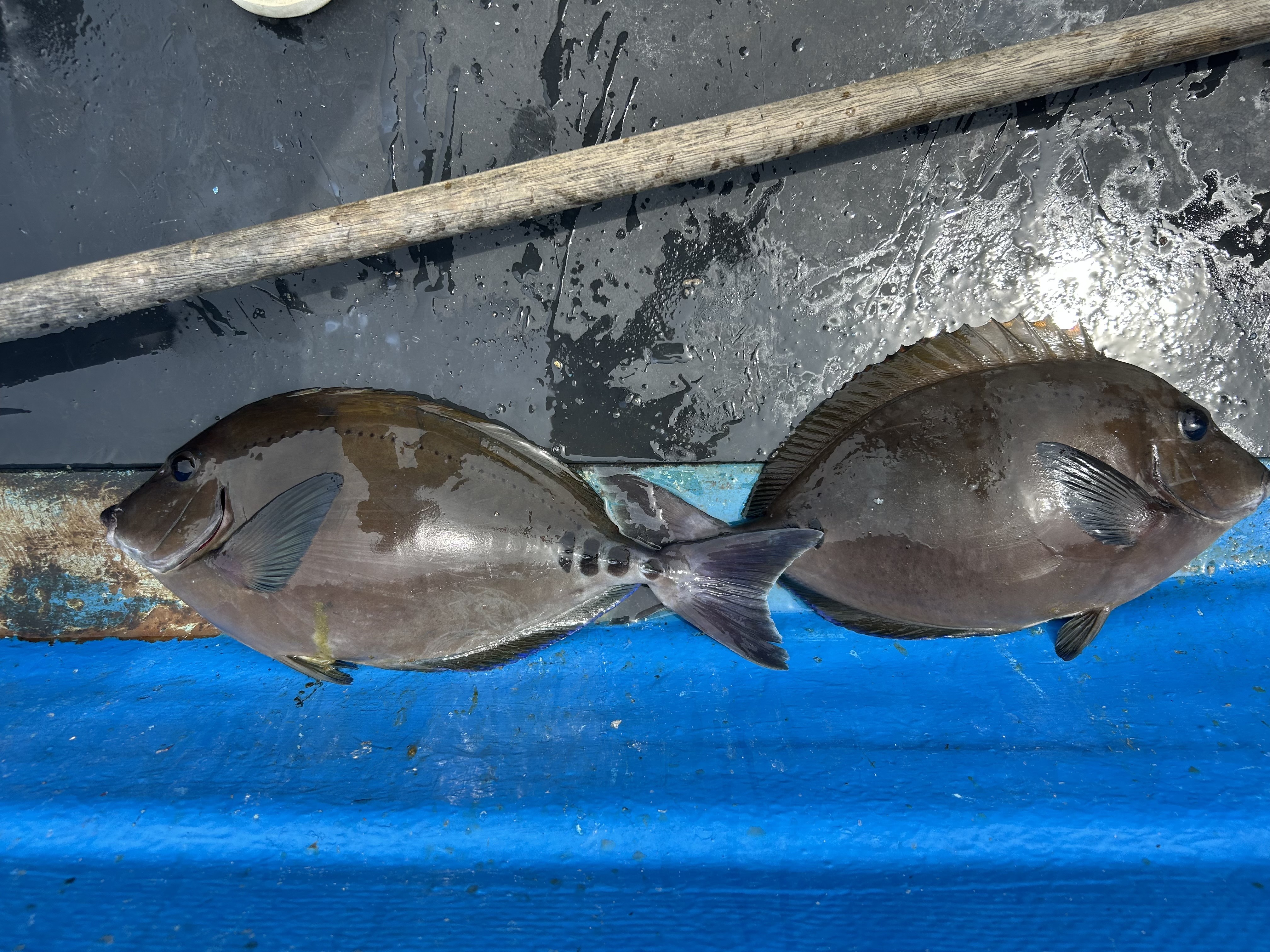 そして胴付き仕掛けにまたも強烈なアタリが!竿をたたく独特のヒキで姿を見せたのはニザダイ(サンノジ)!