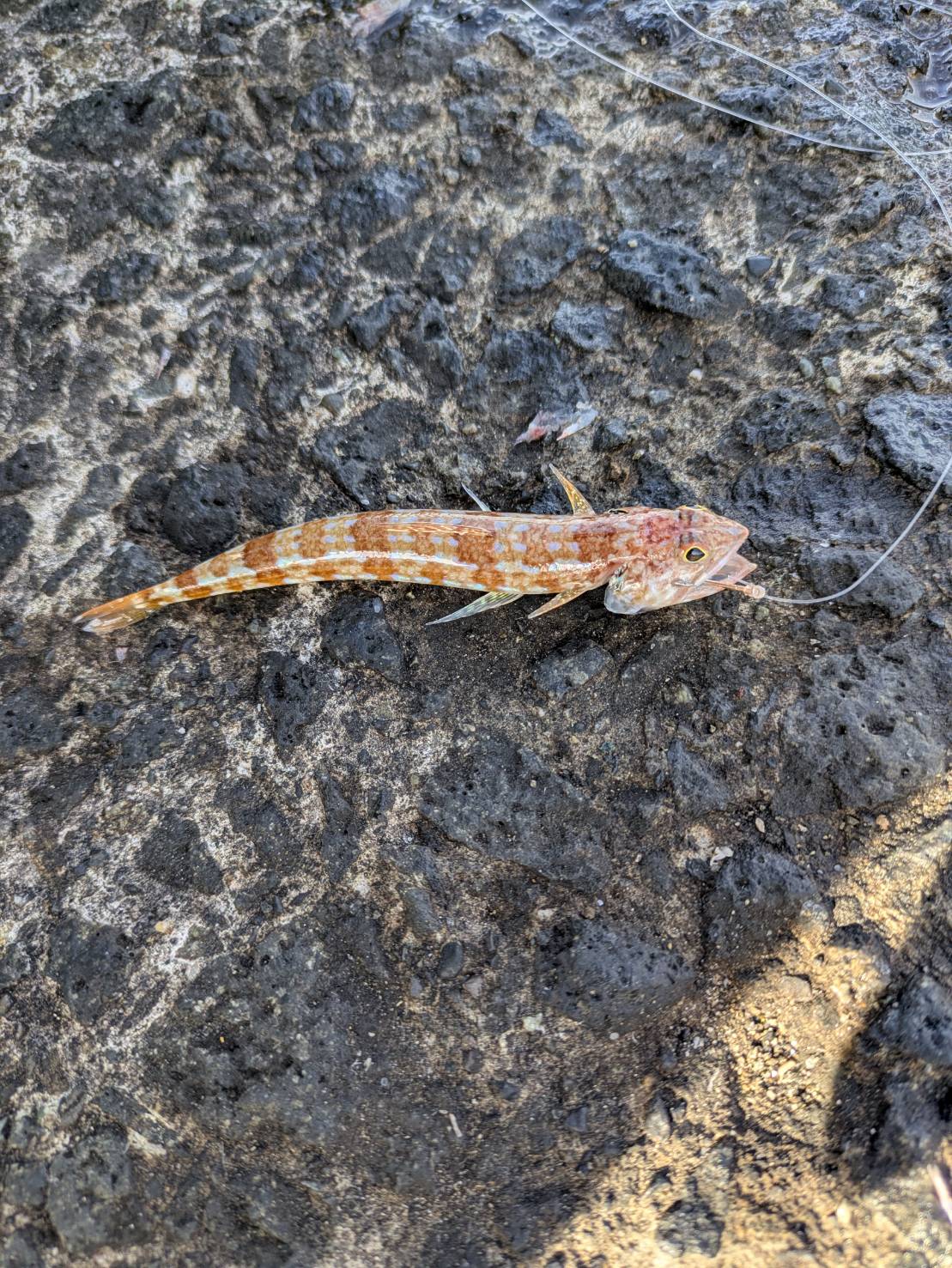 エソでした。つけ餌が底付近にありますね。これでも小サバは釣れるんです。。