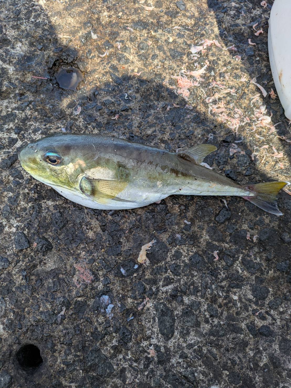 2025.06.04 印刷する 西伊豆沖堤防 両軸遠投カゴ釣り 魚種 サバ サイズ サンノジ 数 サバ多数 エソ1匹 サバフグ1匹 釣り方 両軸遠投カゴ釣り 場所 静岡県 天候 晴れ スタッフ 霜田陸 店舗 イオン相模原店 釣行日 2025.05.28 コメント こんにちは!つり具のブンブンイオン相模原店の霜田です。今回は、静岡県西伊豆田子の沖堤防へ両軸遠投カゴ釣りを行ってきました!例年になると、イサキやシマアジ、デカサバが釣れているので、狙いたいところです。先端向きでタナ20mハリス3号5.5mでスタート!飛距離90m付近を狙います。 が、、小サバまみれ!!どこを投げても小さいサバがくっついてきます。 中層ではどうにもならないので、タナを深くしていきます。すると、、 エソでした。つけ餌が底付近にありますね。これでも小サバは釣れるんです。。午前11時、ウキがスコーンと入り、合わせると、中々の重み。 サバフグでした。ハリを10本以上取られていたので、おそらく犯人ですね。午後になっても状況は変わらず。。午後1時。タナ29mでウキがズッポリ!!強烈な引きです! しかし、巨大なサンノジでした。残念ながら、タイムアップ。船長さんに話を聞くと、沖ではイサキは釣れているが、まだ沿岸には接岸していないよう。あと2週間ぐらいしたら変わるのではないかとのことでした。来月あたりにリベンジしたいところです!! 使用した釣具 竿 がま磯アルデナ遠投4-57B リール abu6500CS rocket ChromeⅡ