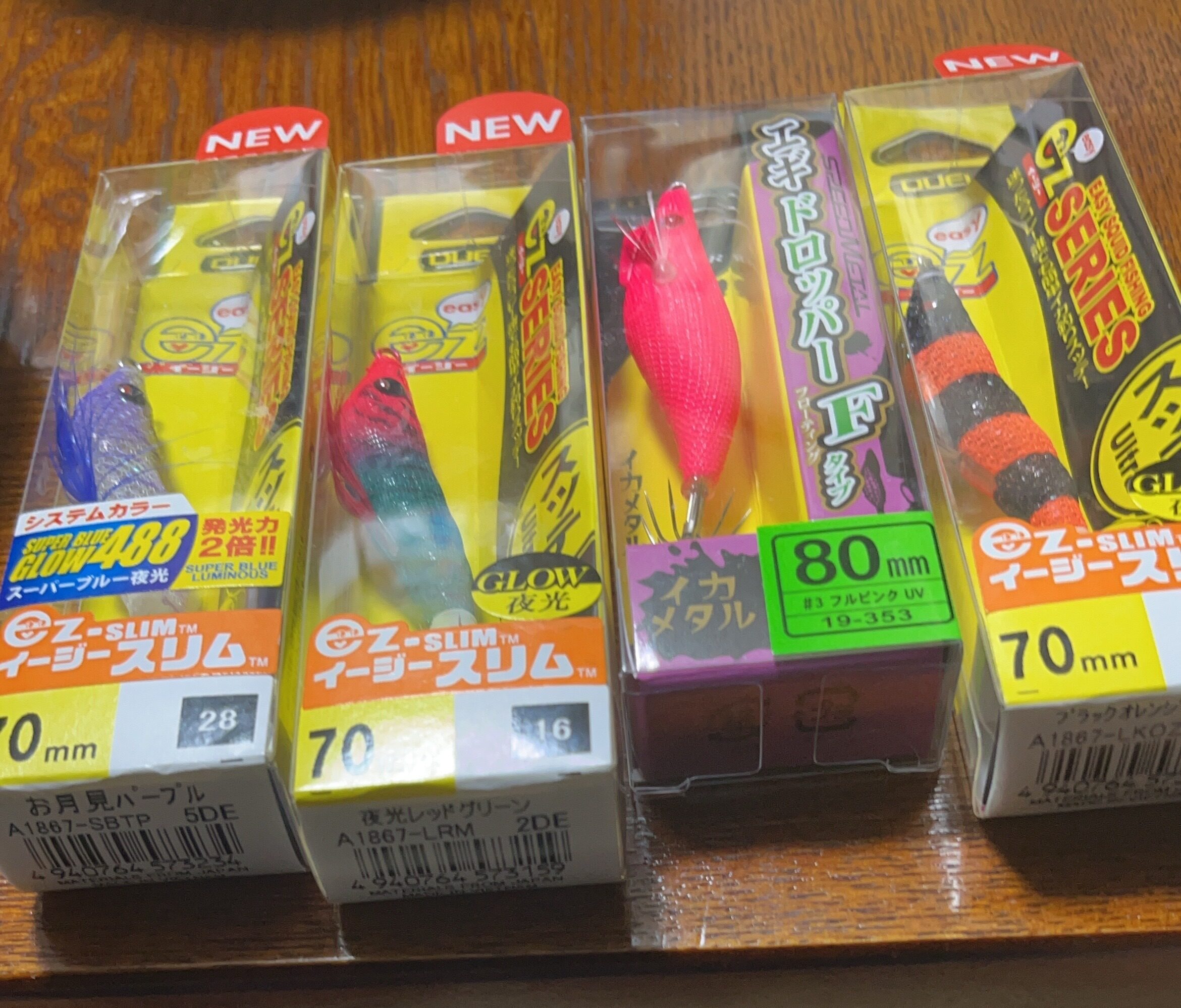 船長の話ではドロッパーは小さめがいいという事ですので、新しく発売されたイージースリムやスピードメタルのエギドロッパーを持っていきました。