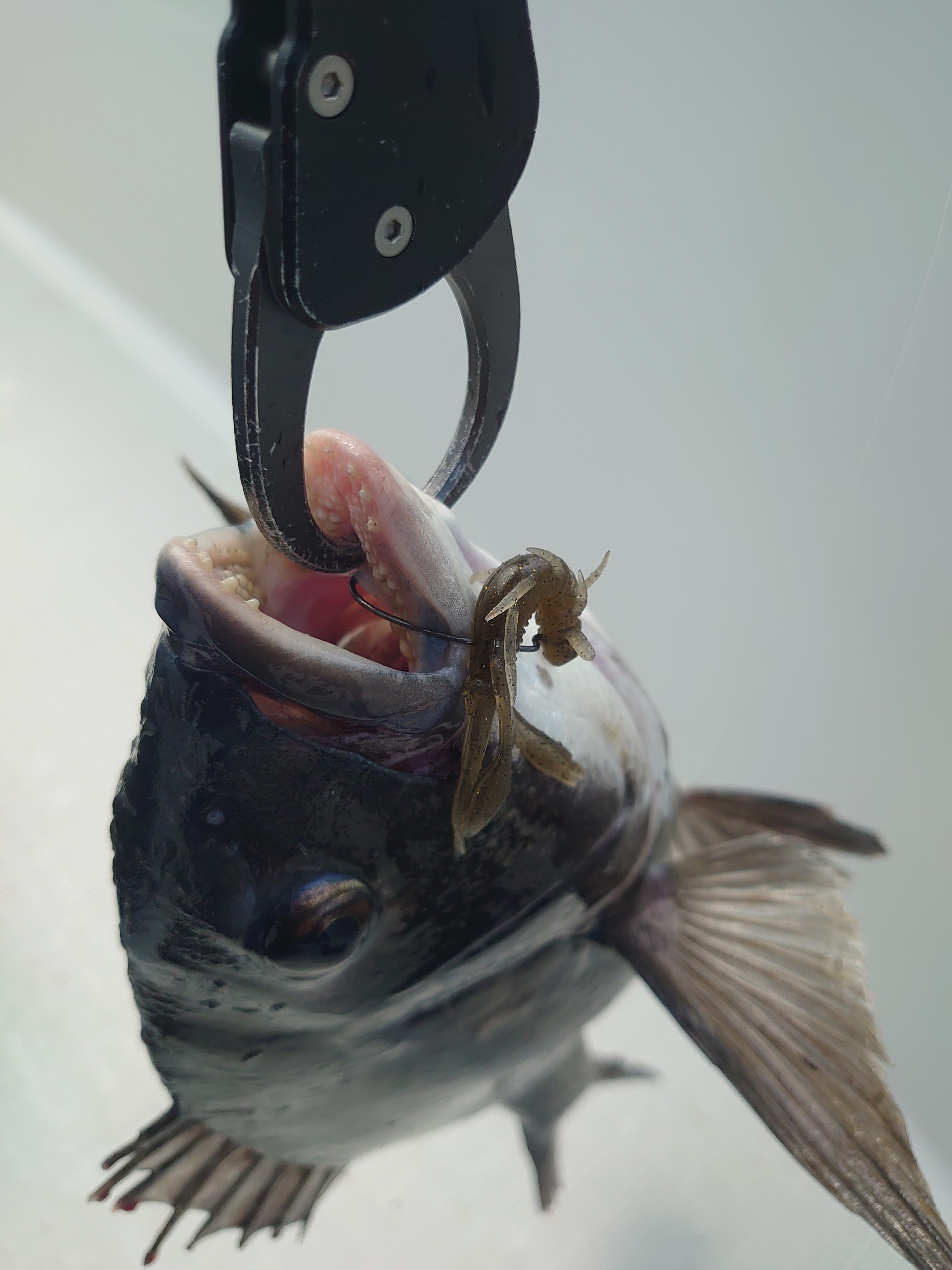 タダ巻きでも反応が悪くどうした物かとやっていると、石﨑船長からスイミングパターンかもとの事でコツを教わり(簡単に言うとテンションフォール)見様見真似でやっていくとバイトの嵐!!さっきまでが嘘みたいにバイト連発です!
