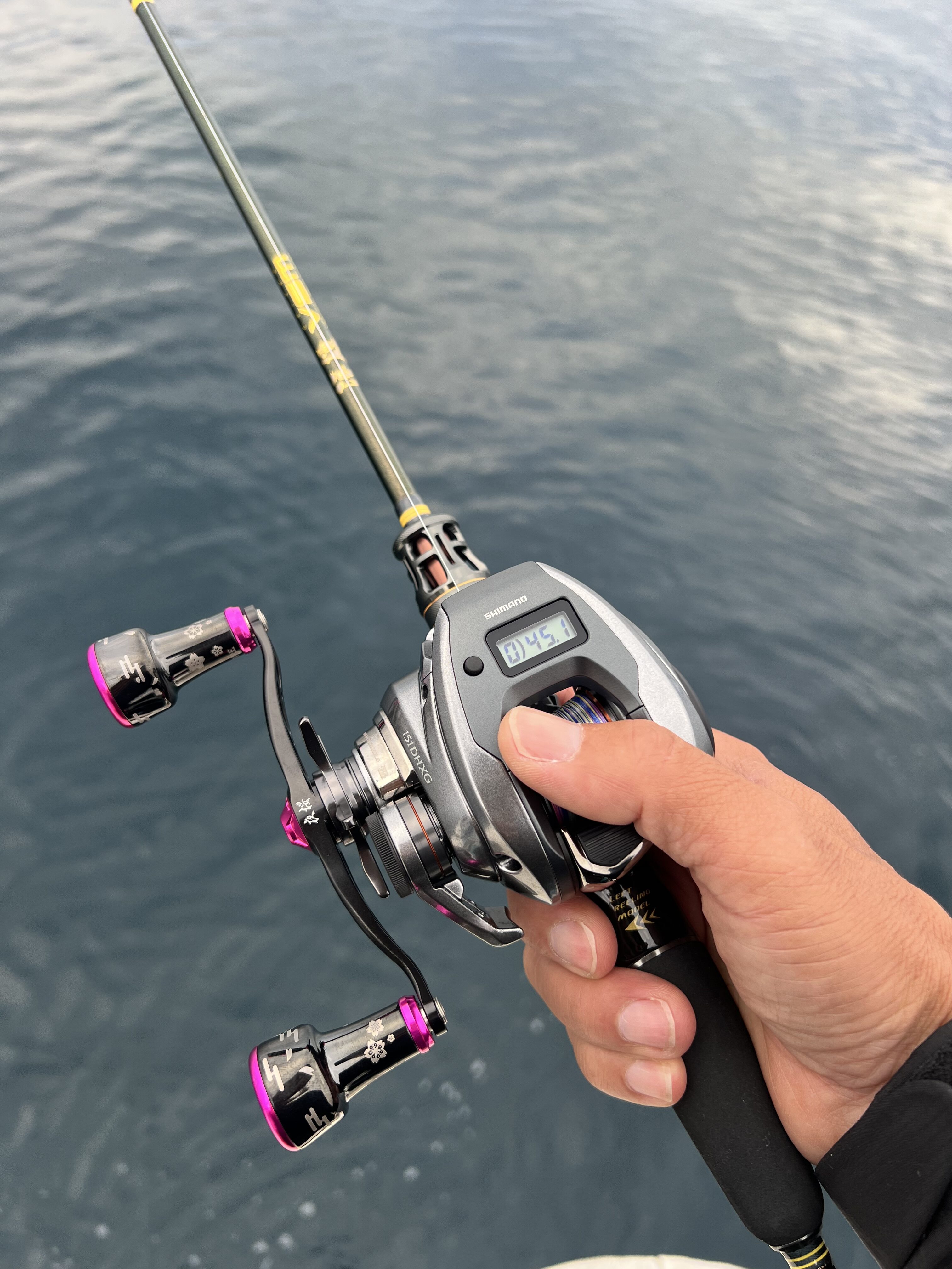今回は40メートルの浅場でアンカーを入れてイカメタルゲームが開始です。