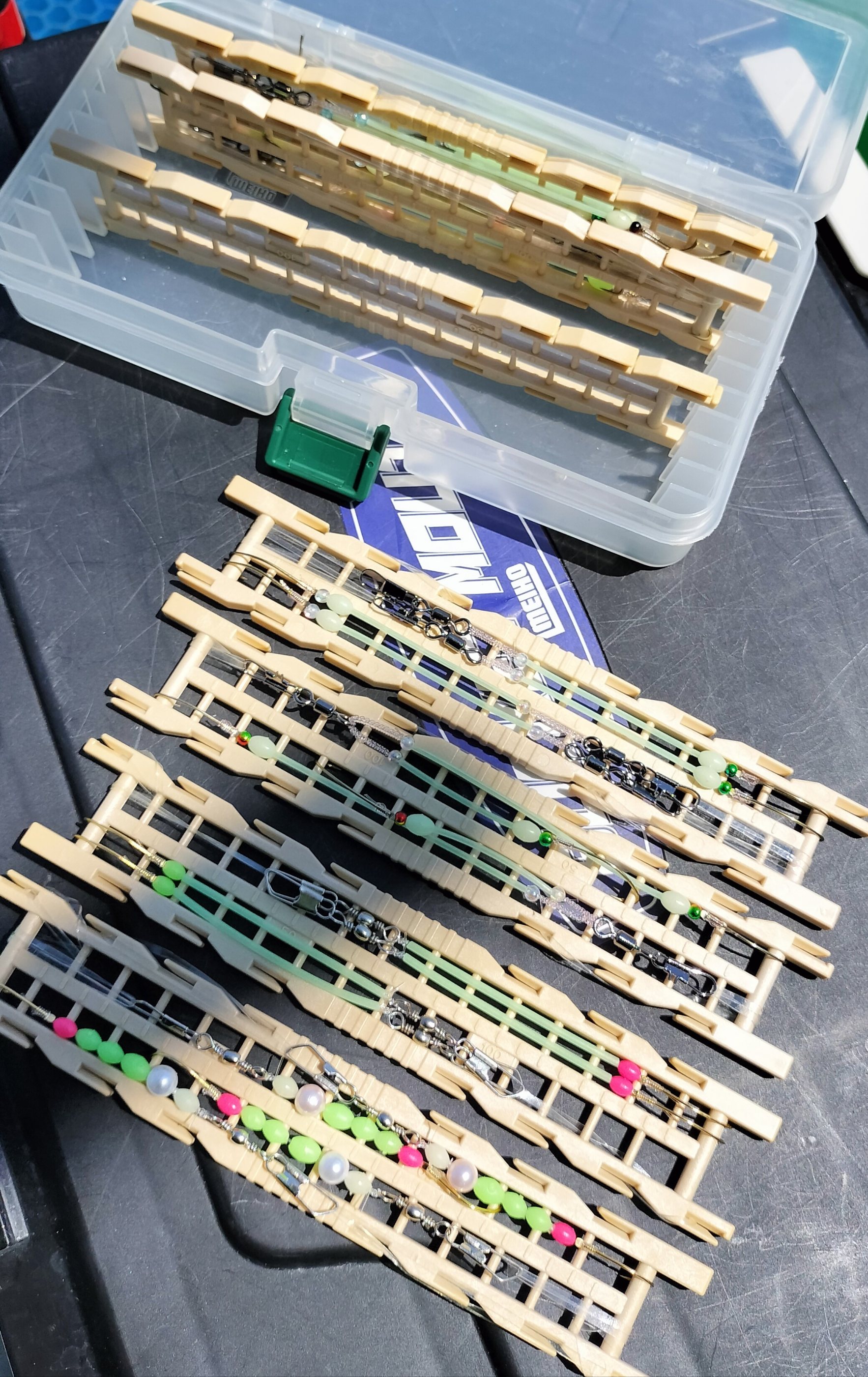 - 片テンビン+オモリ20号、市販のキス仕掛け(吹き流し2本バリ)