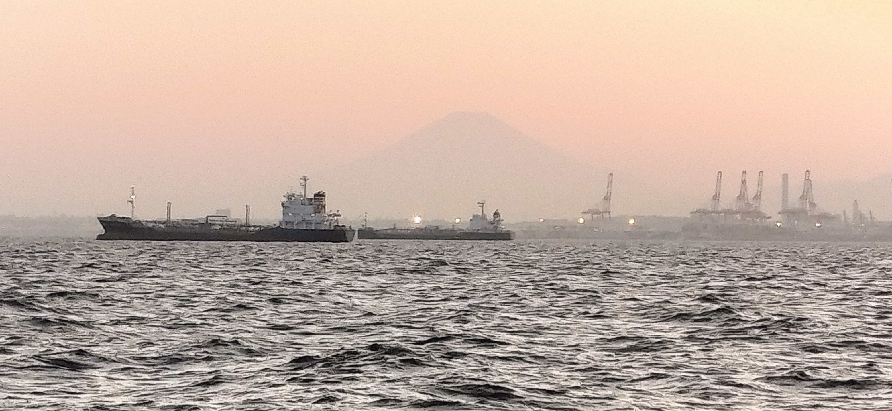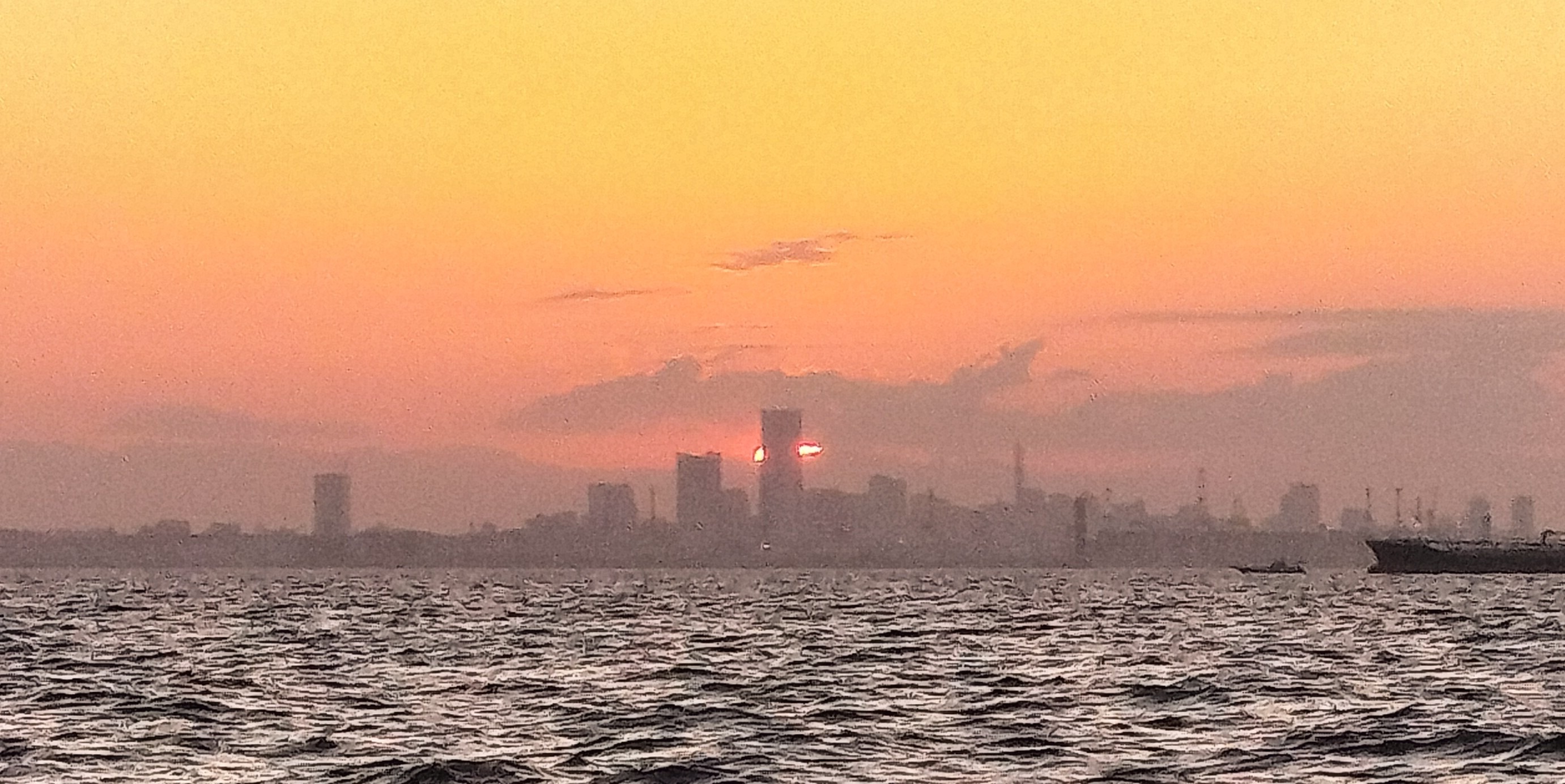 そして夕陽が横浜のベイエリアに沈み、遠景にて富士山も望める中、2種目目で初挑戦の船アナゴ釣りに移行。