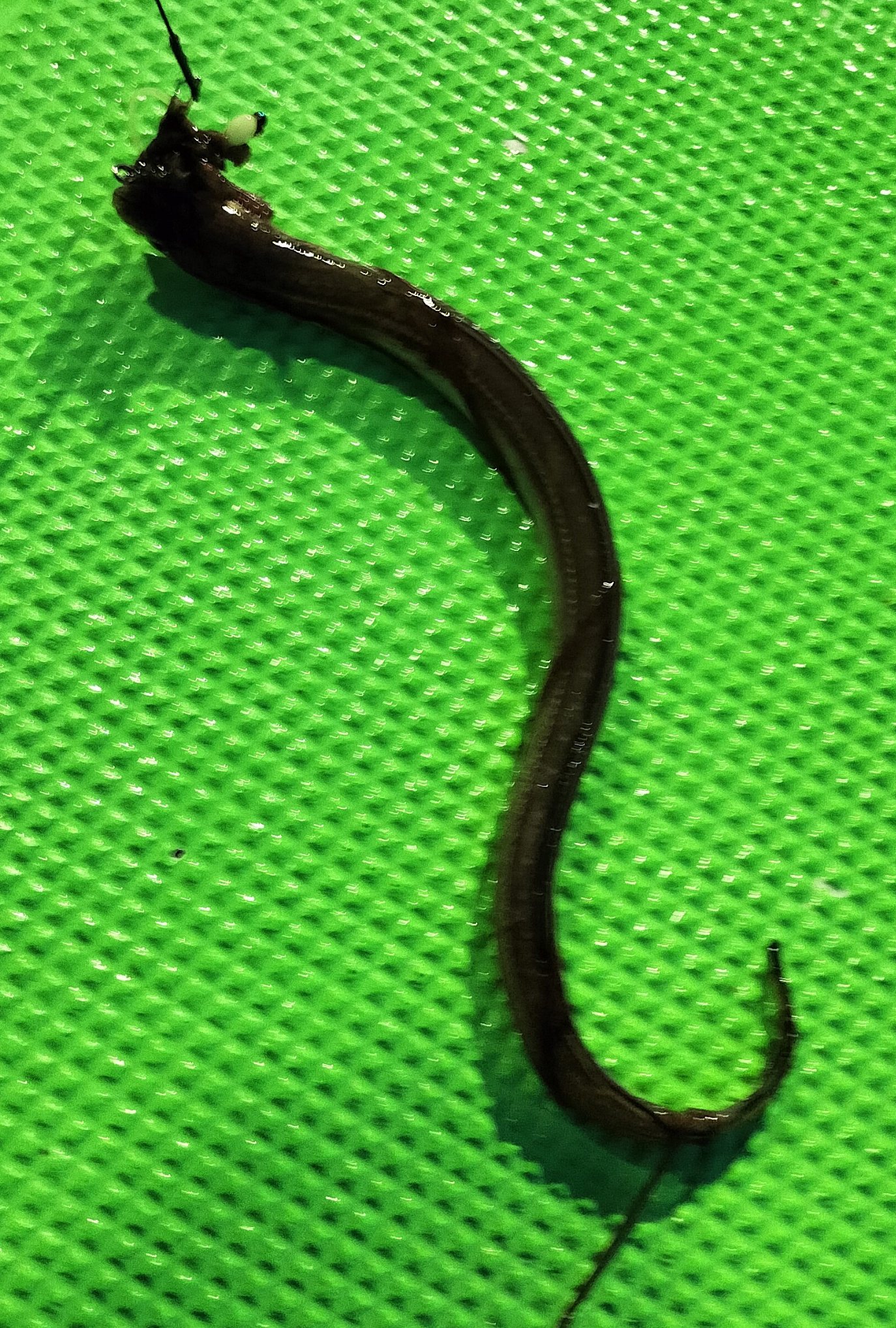 巻き上げてみるとメソッコと呼称される小型のアナゴが掛かっており何とかボウズは脱出!!