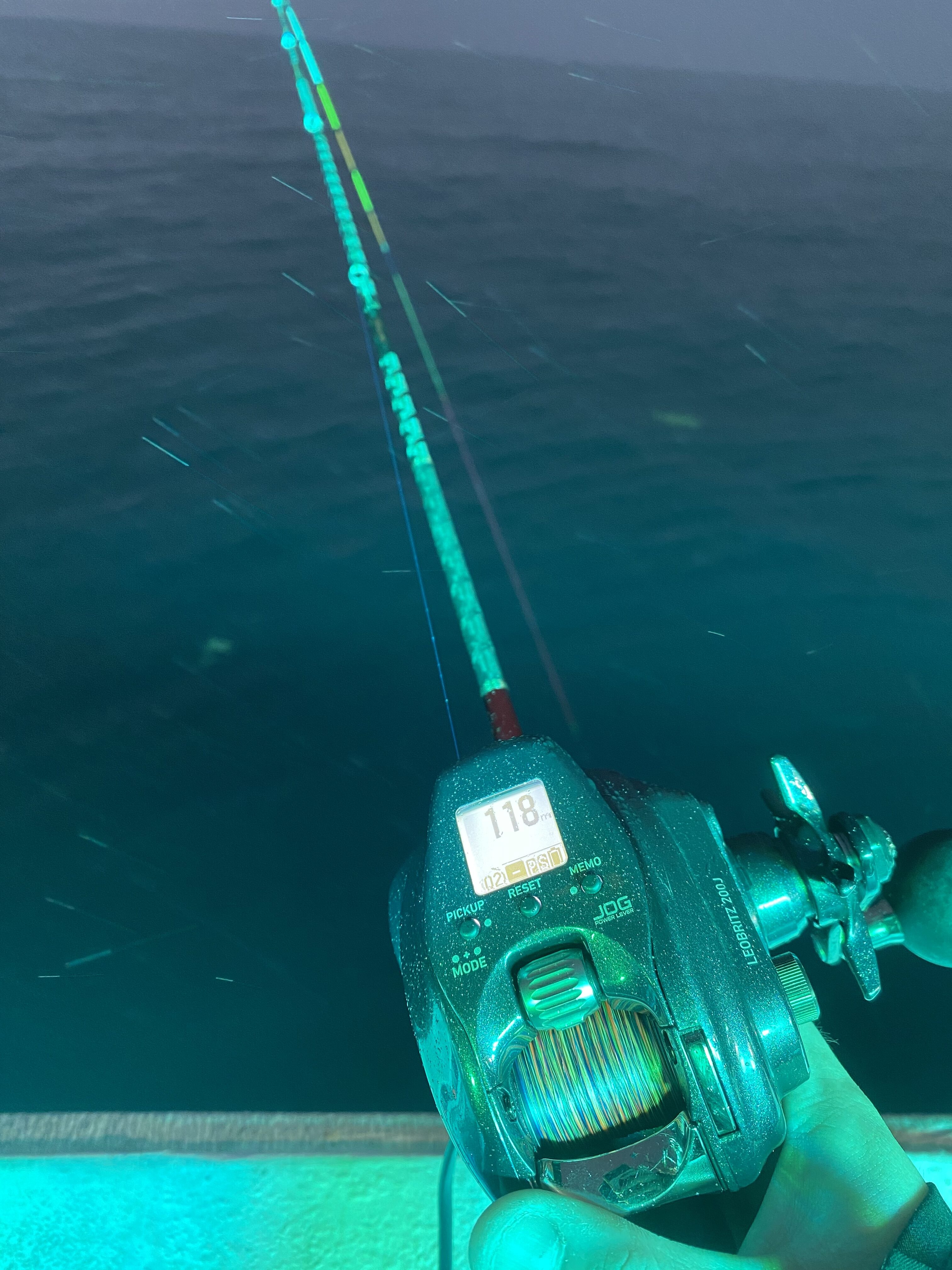 水深が深いと言うことで初の電動イカメタル🦑水深120m~60mと幅広い棚を探るには手巻きはしんどい😓レオブリッツ200Jを使用しましたが、快適楽々!