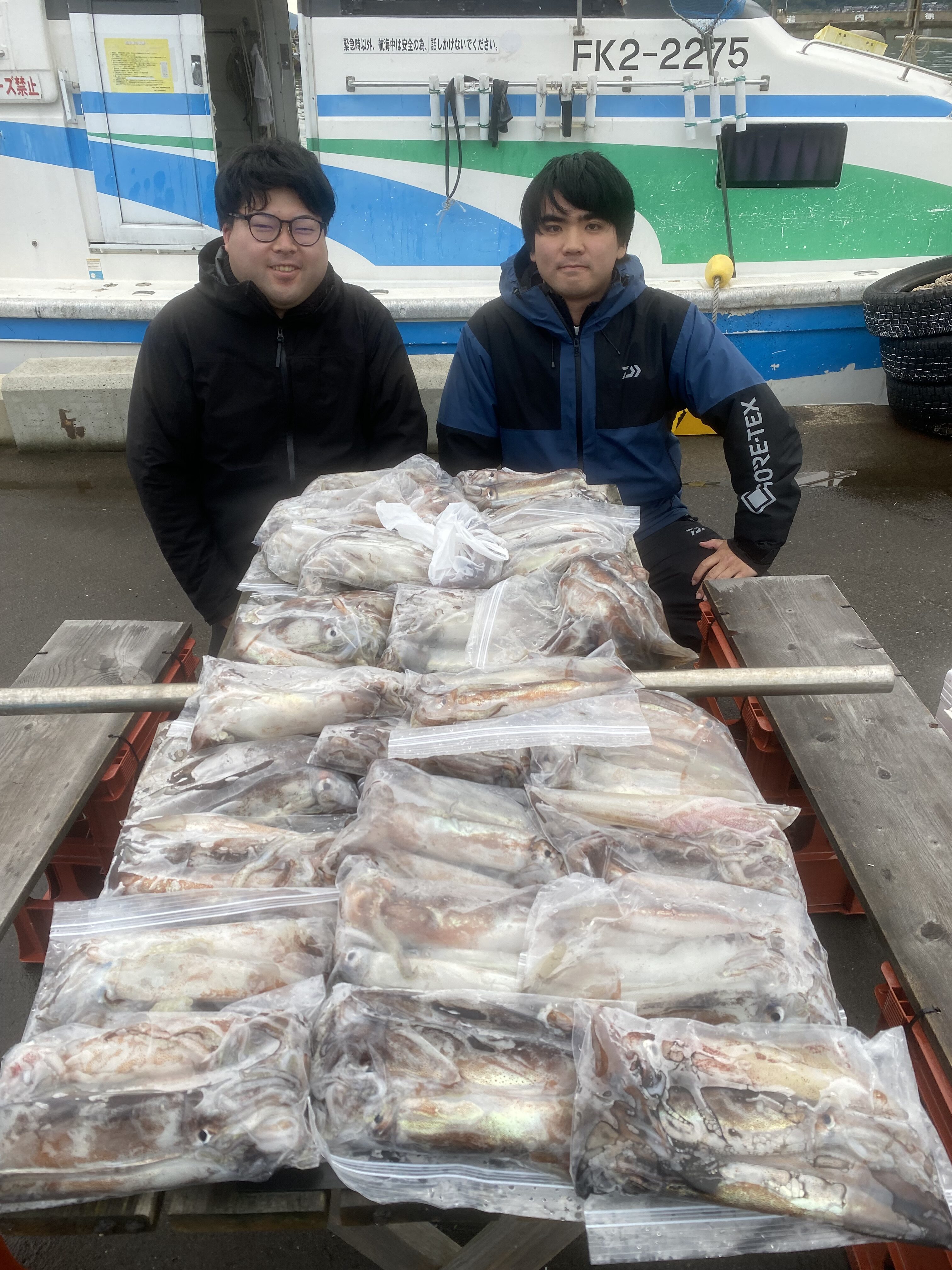 2人で150杯以上釣れ大満足😊スルメが大半でしたが、マイカもチラホラ。