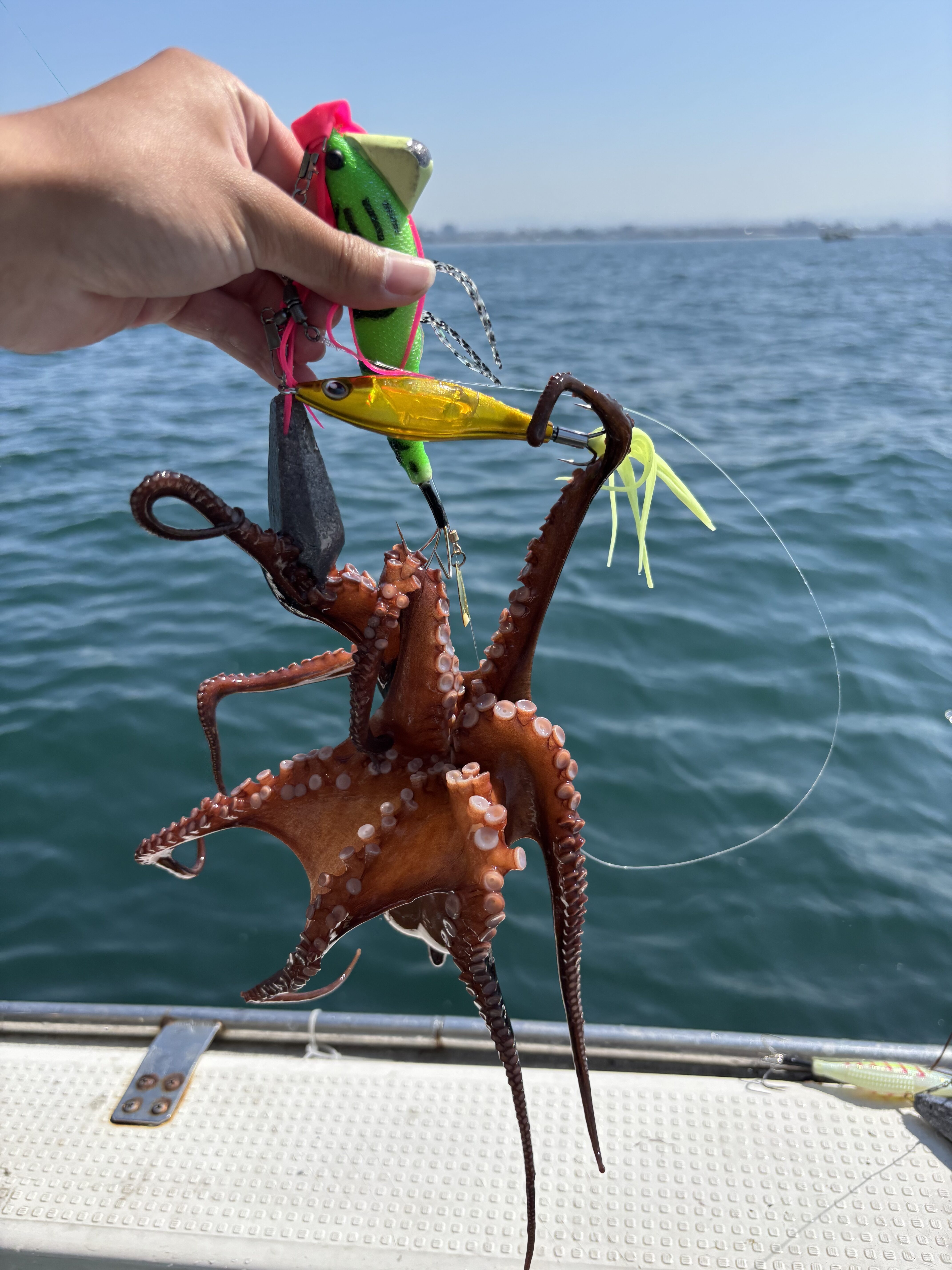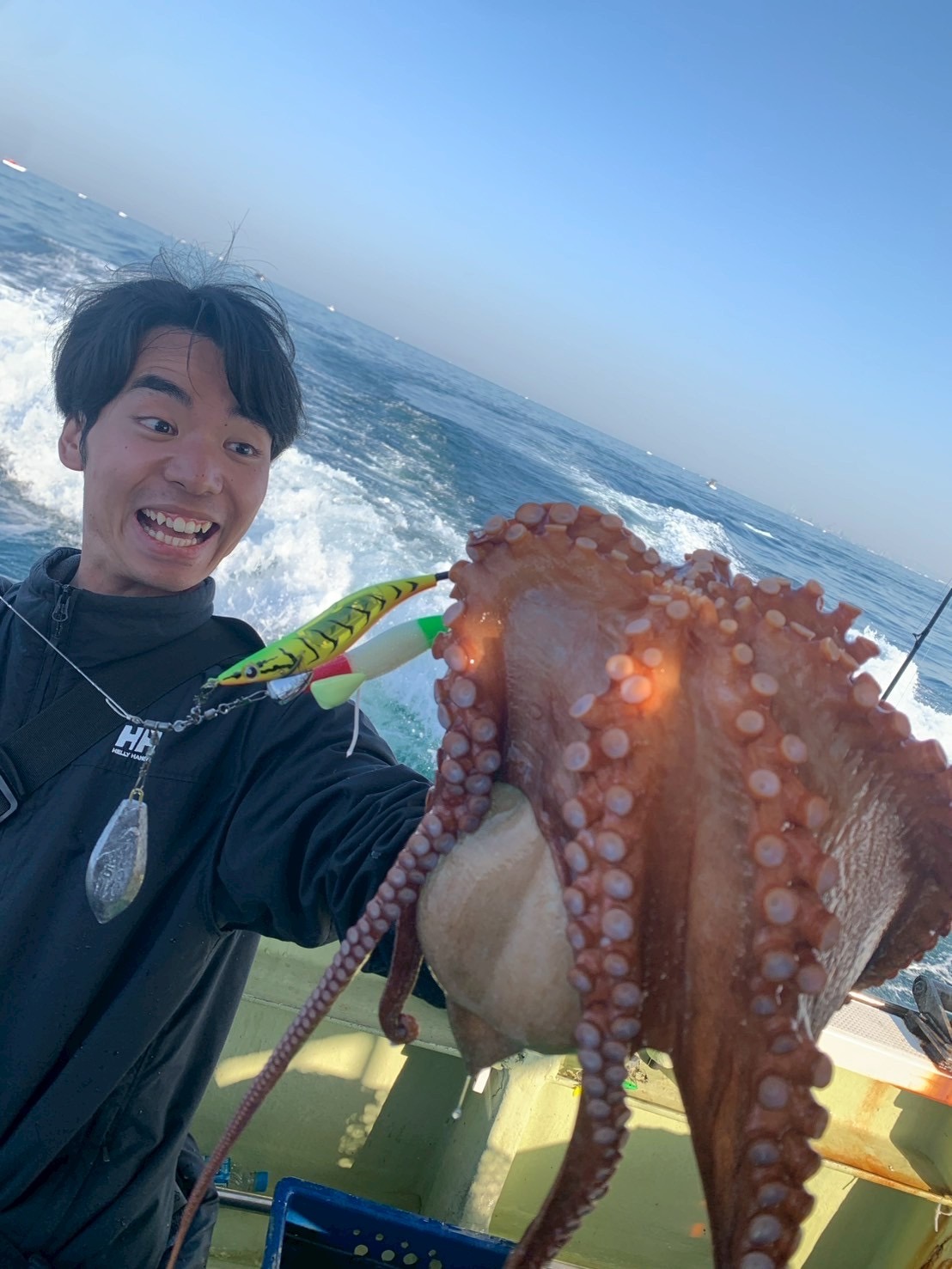 1箇所目のポイントにつき1流し目、周りの同期たちが一投目から可愛いサイズのタコをバンバン上げていきます!大盛り上がりの船内、なぜか自分以外はみんな釣っています笑