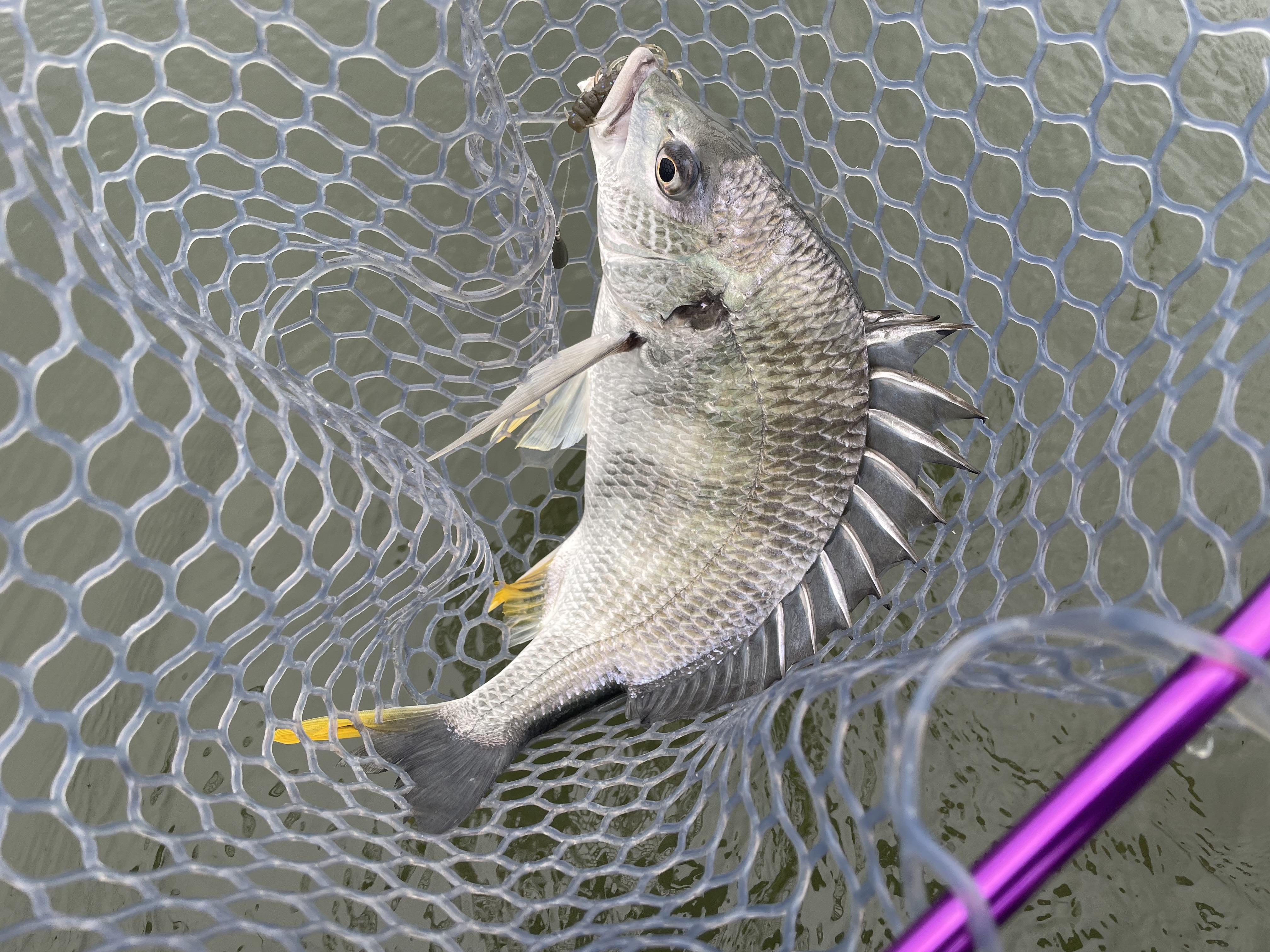 2025.06.09 印刷する 吉村釣行便 多摩川ウェーディングチニング編 魚種 クロダイ/チヌ 数 キビレ/10匹 クロダイ/1匹 釣り方 ☆チニング 場所 神奈川県 天候 曇り スタッフ 吉村空 店舗 川崎大師店 釣行日 2025.06.08 コメント こんにちは! つり具のブンブン川崎大師スタッフ吉村です!! 今回は久々のホーム、多摩川でウェーディングチニングに行ってまいりました。 前までのパターンから干潮前の潮どまり直前に釣れると予想しエントリー。 まずはPEラインを濡らすため捨てキャストから開始。 すると、、、 ゴンっ!! 一投目からヒット!! たまたまか、と思いながら続いてスイミングで狙っていきます。 二投目、反応なし。 三投目、、 ゴッゴゴッ!! これはもう時合って事っすね、、 ガンガン流れが効いている状況だったので前回とはパターンが変わっていました。 ここから連発モード 写真を見返すと1時間で八枚。 これはもっと早くエントリーしていればさらに拾えたかな、、 ベースはボトムスイミングで攻めていきました。 潮が緩み反応が薄くなったため移動距離を抑えじっくり見せるためにボトムバンプにアクションを変更。 すると、、 ドンっ!! 抑え込むような当たりが出ました。 その後上げに変わると反応が全くなくなり納竿。 結果的に11枚のツ抜けで終了。 最近多摩川は厳しかったですがようやくキビレのスクールが入ってきたのかな??と感じる釣行でした。 使用した釣具 ロッド シルバーウルフAIR76mlbs リール シルバーウルフSVTW ルアー アーバンホグ(サンドシュリンプ、ライトオリーブ)
