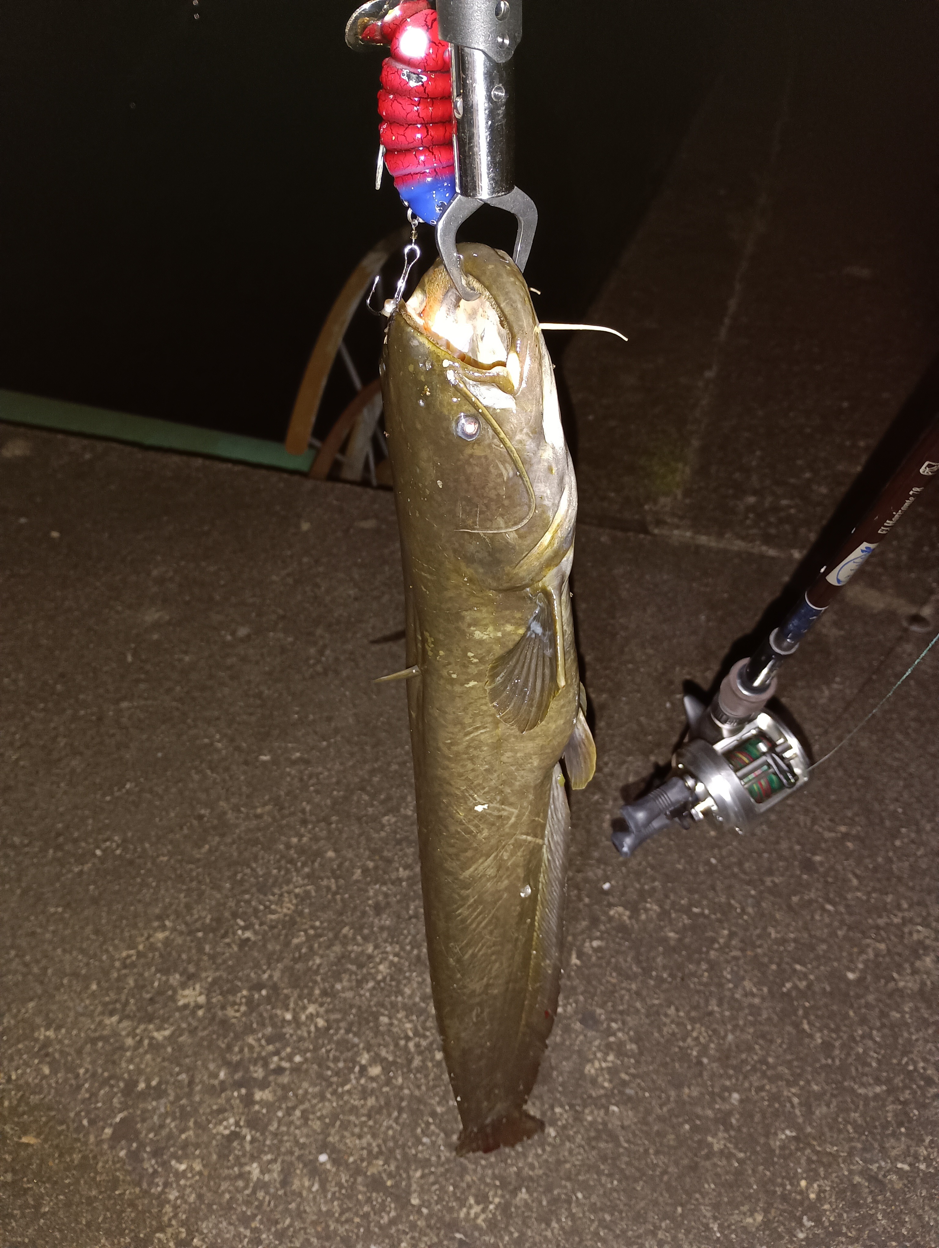 2025.06.09 印刷する 2025鯰釣行6 魚種 ナマズ サイズ 62cm 数 鯰 62cm 釣り方 ☆ナマズ 場所 京都府 天候 曇り スタッフ 松田 侑也 店舗 関西 京都 伏見店 釣行日 2025.06.04 コメント 今期6回目の鯰釣行。 前回釣行は5バイトノーフィッシュと抜き上げポロリもありましたが、あまりに活性が良くなく状況でした。 今回も前回と同じ近場の用水路ポイント。 雨後の釣行だったので、少し水位が上がり、濁りが入った状況。 早速一投目より着水後のステイで、ルアーの後ろに魚影が。 そのままスローに巻き続けると、追尾してくるものの、喰ってこず。 岸際に魚が戻ったのを確認し、同じコースを今度は早めに通すと、水面割れましたが、キャタピーが吹っ飛んだのみで終了・・・ まだ喰ってきそうな雰囲気なので、ポイントを寝かして置き、大きくポイント移動し、違う水路へ。 ここでも1バイトあるもやる気のない単発バイトで掛からず。 もうそろそろ終了時間が近づいてきたので、最初の反応あった寝かしていたポイントへ。 先程反応のあった岸際にルアー通すと、やはりルアーに着いてくる。 しかし反転して元の場所に戻ってしまったので、できる限り気配を殺して、ルアーが動くギリギリのスピードでテクトロで近づきてポイントを攻めると、ようやく水面が割れ、ルアーが水中に消える。 あまり重量感はなかったですが、思ったより引いたので、抜きあげてサイズ測ってみると、62cmでした。 この日も渋かったですが、何とか1匹絞り出したところで納竿としました。 使用した釣具 ロッド エクストリーム エルホリゾンテ78 リール シマノ カルカッタ400 ルアー スミス キャタピーⅡ