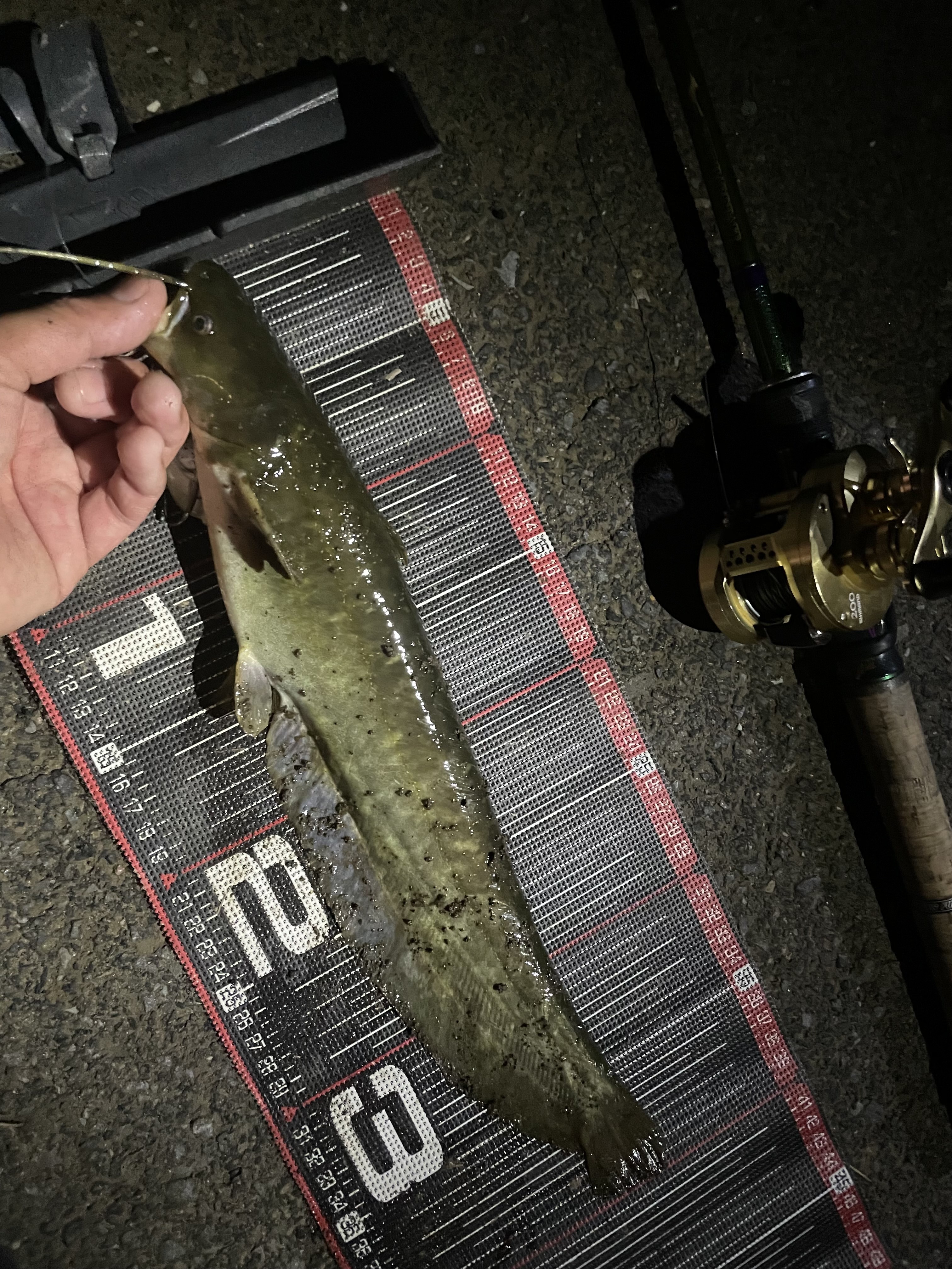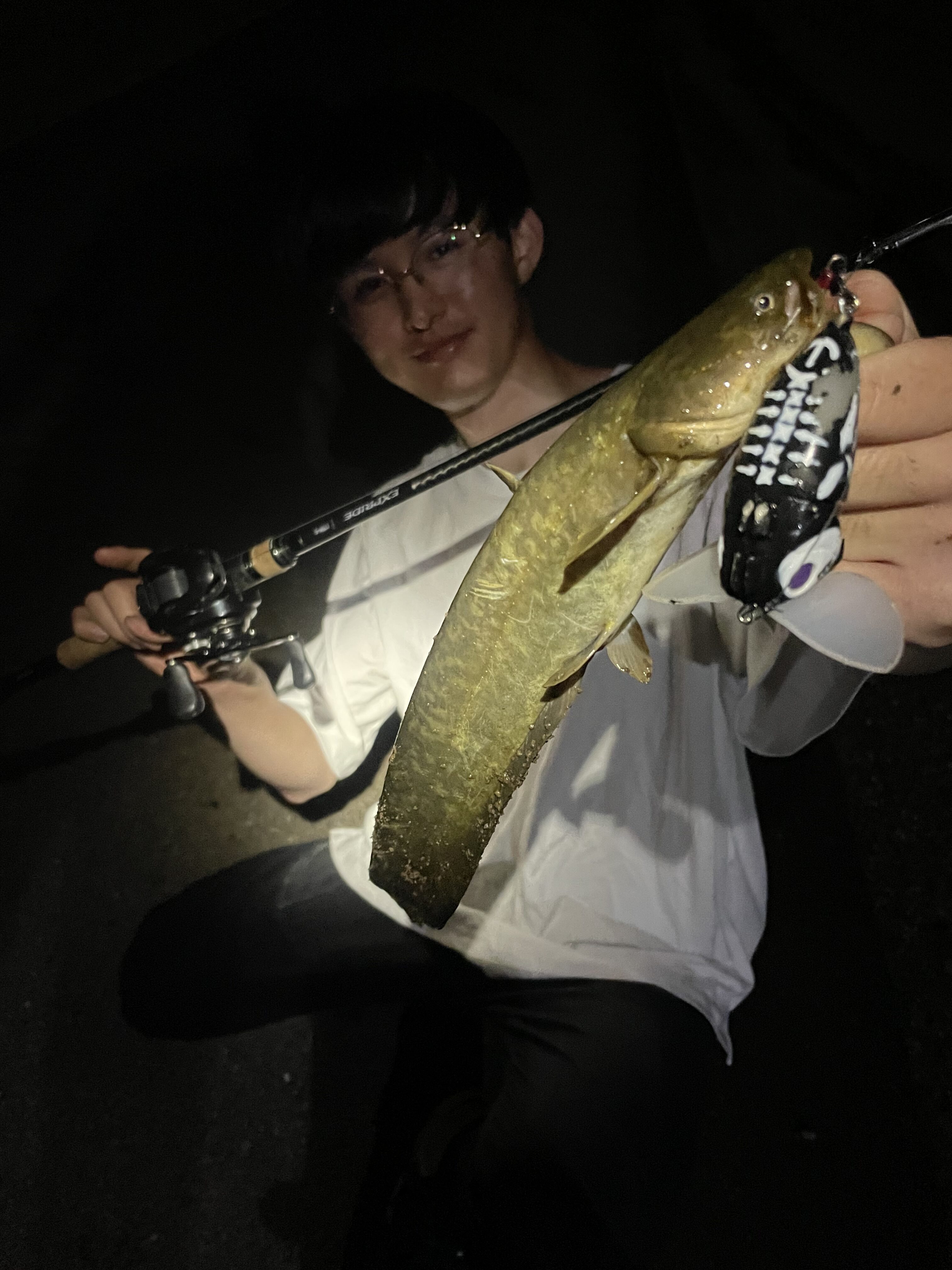 2025.06.10 印刷する ナマズ調査隊! 魚種 ナマズ サイズ 40cm 数 1本 場所 埼玉県 天候 曇り スタッフ 中村祐 店舗 柏店 釣行日 2025.06.04 コメント 柏店中村です! 今回は柏店剱持さん、三井君、Yさんと勤務後ナマズゲームです! さすがに4人でランガンは多すぎるので中村は傍観者で行きます!笑 見ているとかなり渋いようでなかなか反応がもらえていません。こういう時の狙い目はここ!というポイントに試しに投げてみるといきなりバイト!乗りませんが、やる気のあるやつはいそうです! 皆さん頑張ってください!笑 上流にランガンしていくとついにキャッチ成功者が! ナイスキャッチは三井君でした! ヒットルアーはナジーバグ!やっぱりこのルアーは釣れますね! キャッチ成功者が出たところで、自分もちゃんと釣り開始! 3人が叩いた後ですが、無数にバイトがあります!やはり撃っても反応してくれないやつがけっこういるようです!そこをいかに反応させるか!手前岸を通しながら歩いている際、足元のぬかるみを避けようとルアーを止めていると、ポコンという音と共にティップが入ってます笑 小さいですがいただきました!その後は各自追加なく納竿でした! 短時間でサクッと釣ることができますので、ぜひ皆さんも遊んでみてください♪ 使用した釣具 ロッド ノリーズ ロードランナーヴォイスハードベイトスペシャル640ML リール シマノ カルカッタコンクエスト200
