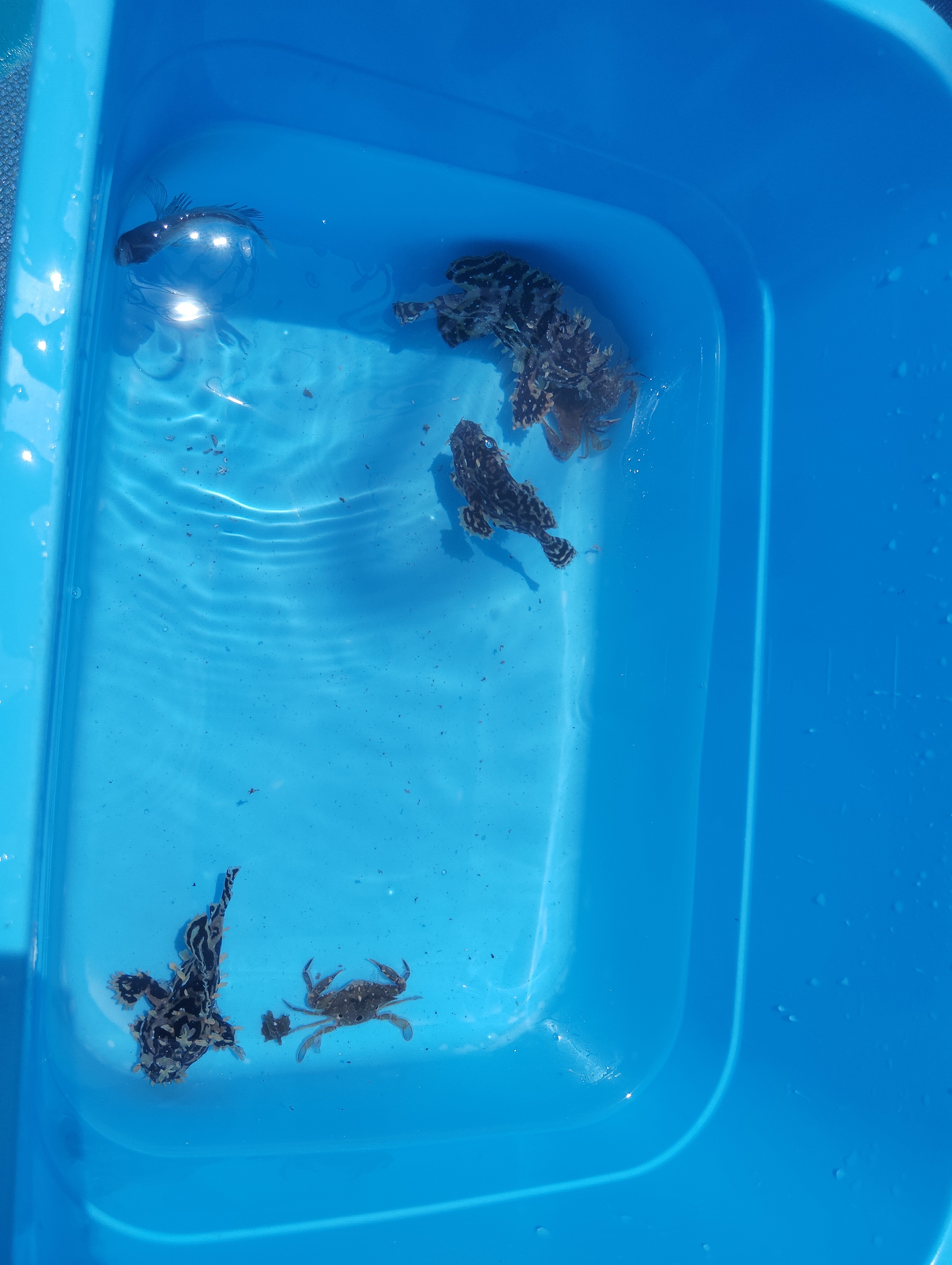 オモリは80号仕掛は11号.水深は50m前後のポイントからスタート。ベイトのファーストヒット私は叶いませんでしたが、白川リーダーがかけてそのまま底に⋯落ちていかない。巻き上げると大きめのサバ。オモリを120号に変えて再チャレンジ。