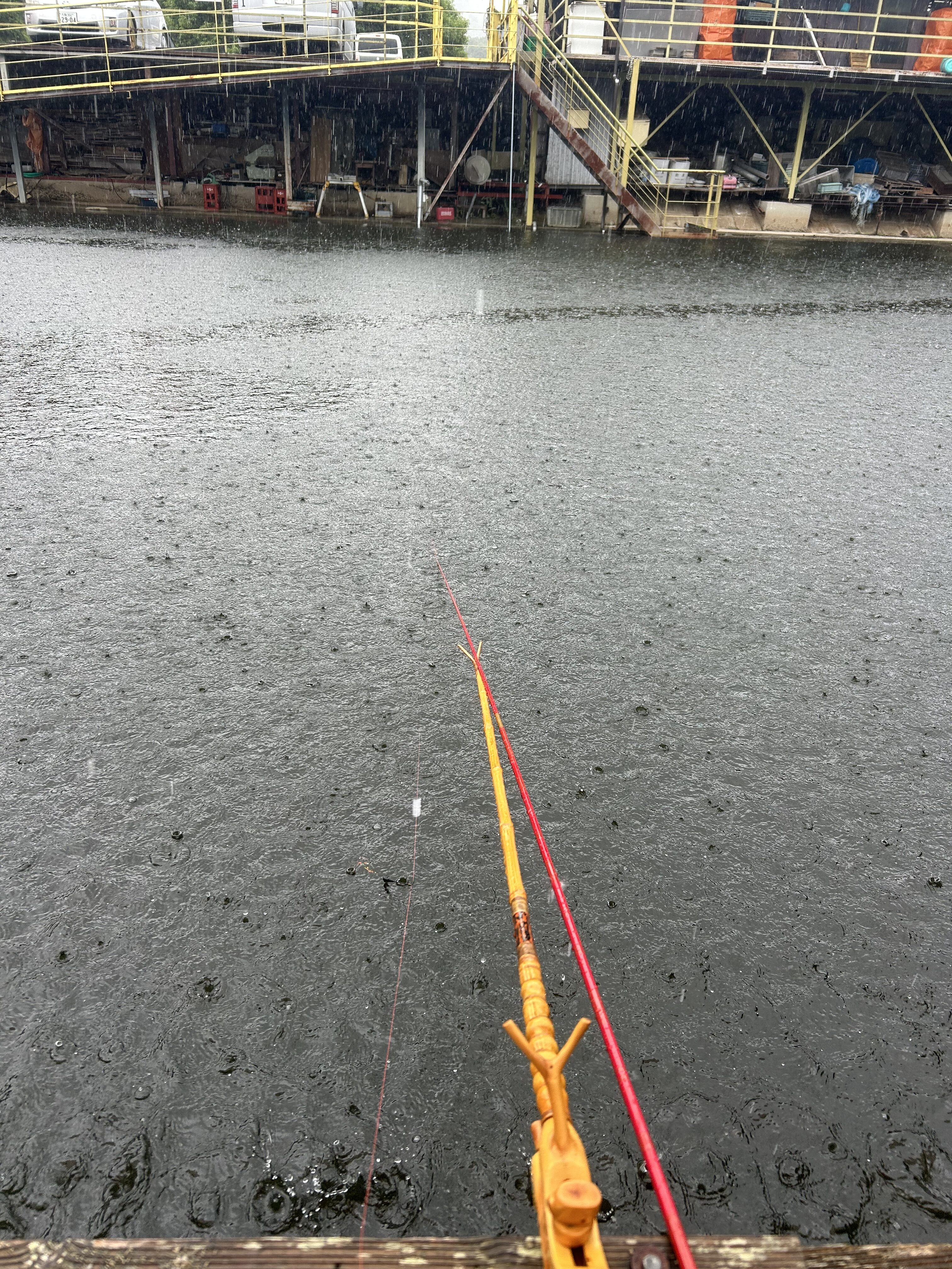 釣り人にとって雨予報は、「あー、明日は釣りは無理だな…」と落胆させるものですが、天神池のヘラブナ釣りは一部屋根付きの桟橋があり、雨が降っても楽しく釣りができます!