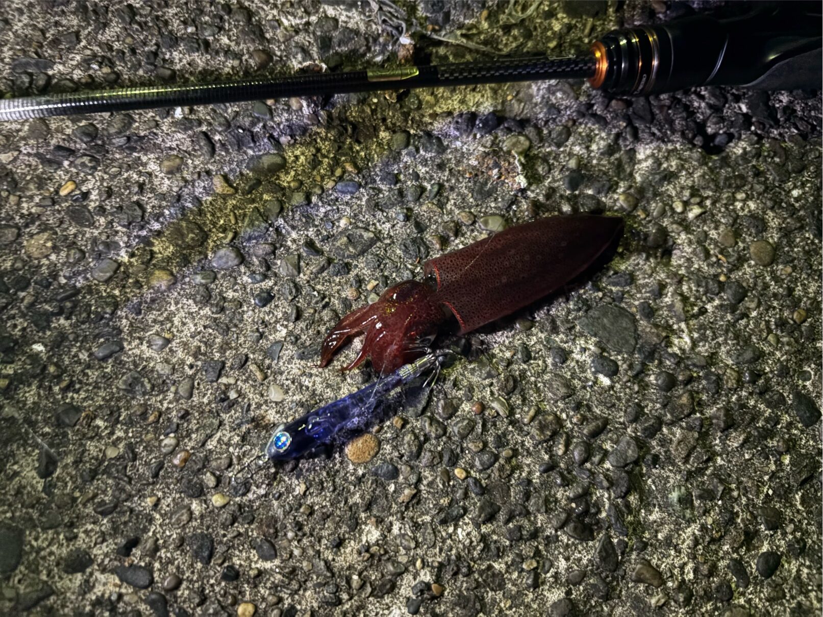 エギを何度か変えていくとその後も小さな当たりが数回と魚の当たりが出ますが掛けられず、群れが少ないのか結局1杯のみで帰ることにしました。