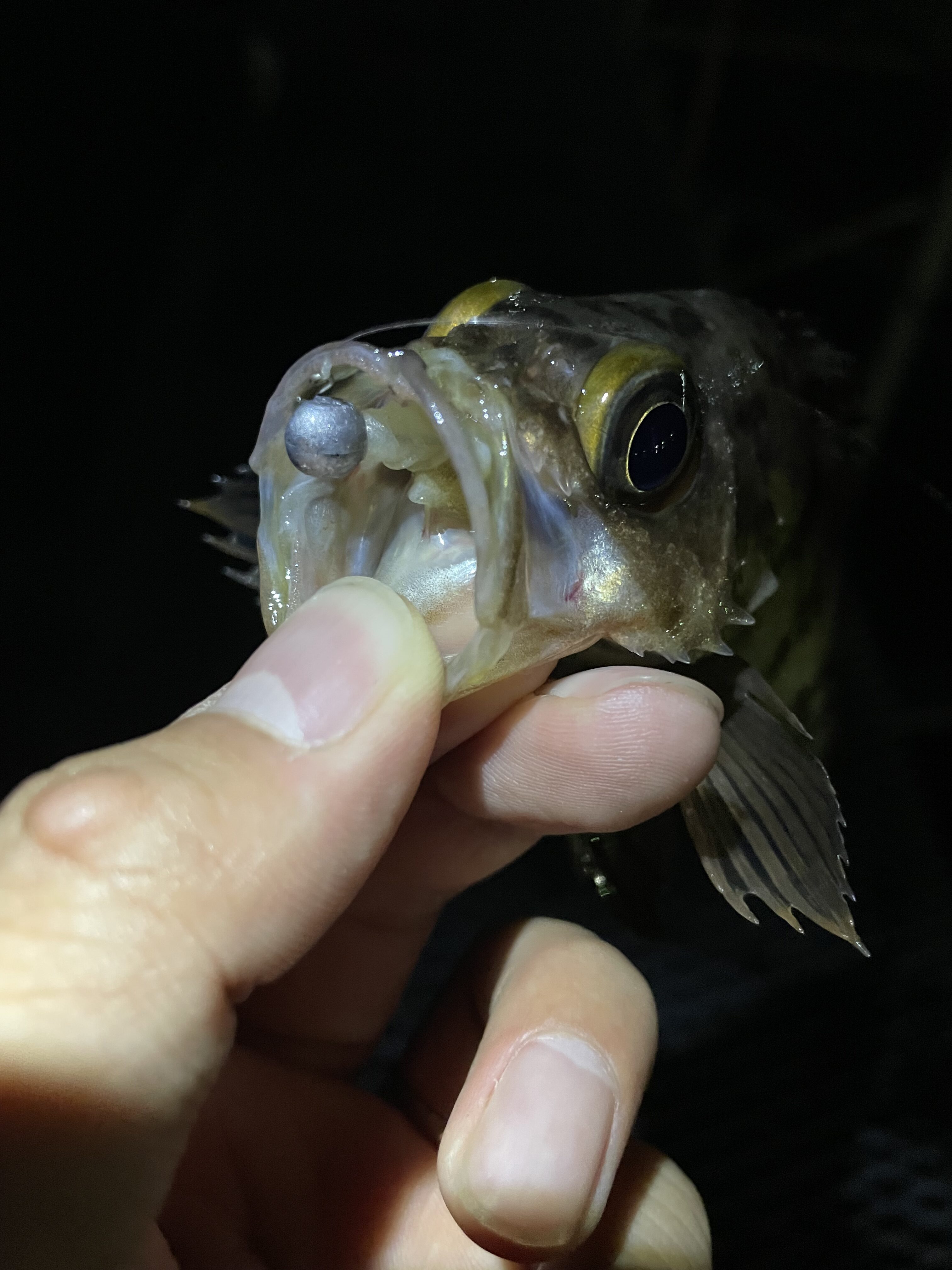 途中同行者に良型のメバルが釣れて
