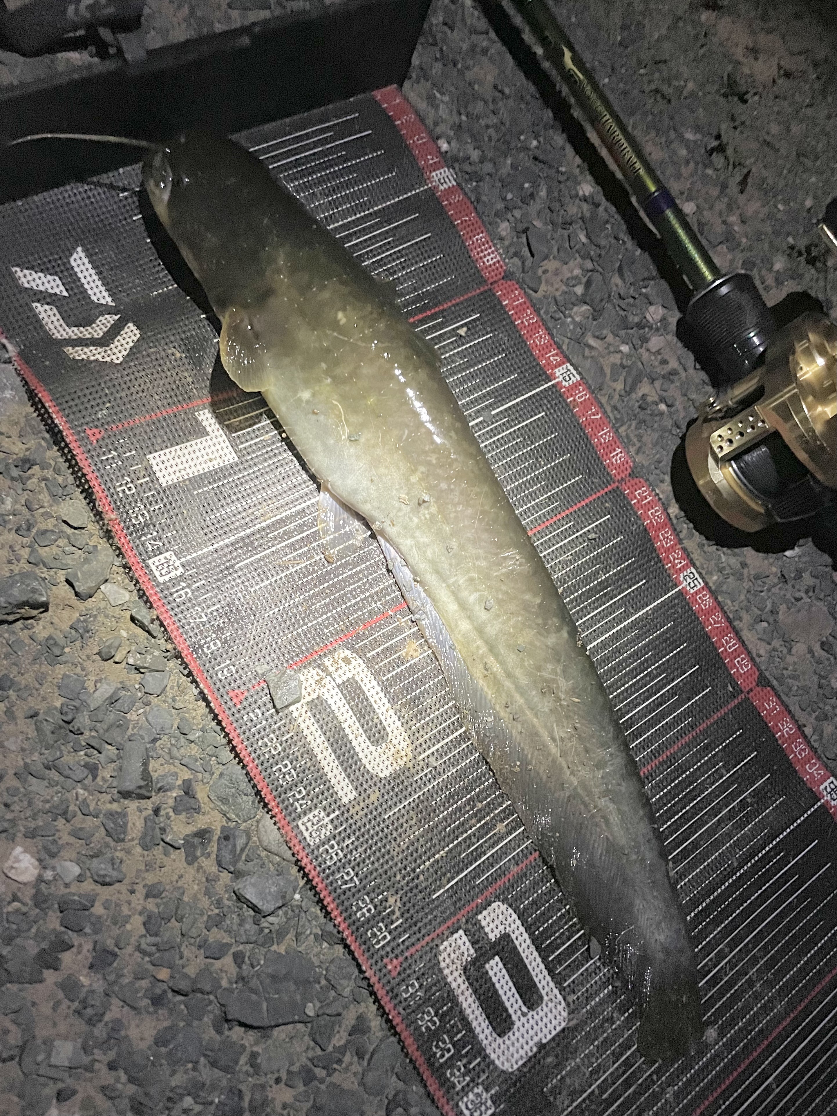 2025.06.16 印刷する 今シーズン79本! 魚種 ナマズ サイズ 38cm 数 2本 場所 埼玉県 天候 曇り スタッフ 中村祐 店舗 柏店 釣行日 2025.06.07 コメント 柏店中村です!今回は勤務後ナマズゲームです! 兄がやっているとのことだったので合流します!ポイントの雰囲気は良い感じ!兄と喋りながら早速狙っていくと、シャローでいきなりのバイト! サイズは小さいですがとりあえず1本いただき! 追加を狙っていきます!ランガンしてみますが、バイトこそあるもののフッキングには至りません…!これは反応してくれる個体のサイズが小さくて乗らないパターンのやつ…。少しでも良い個体が居ないか探していきます。兄にもバイトはありますが乗らないようです。 先日雷様が降臨したエリア。ここならどうかとキャストしていくとミスバイト!もう一度狙うと今度は食わせました! ほんの少しサイズアップ笑 2キャッチで今シーズン79本!早くも80本が目前です!昨シーズンは80本釣れたのが10月なので、今年はかなりのハイペースです!夏場は少し落ち着くと思いますが、この調子で釣っていきたいと思います 柏店ではナマズコーナー強化しております!ぜひご覧ください♪ 使用した釣具 ロッド ノリーズ ロードランナーヴォイスハードベイトスペシャル640ML リール シマノ カルカッタコンクエスト200