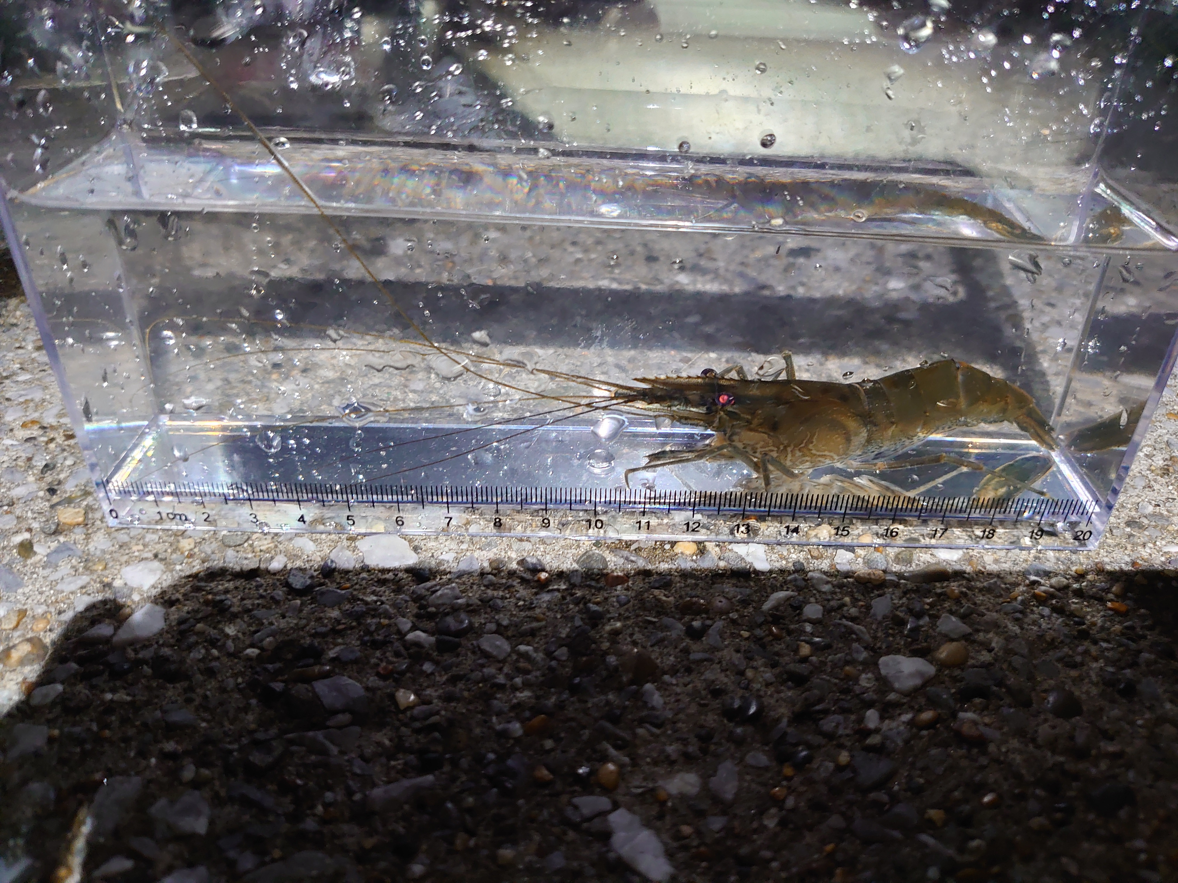 2025.06.16 印刷する 人生初のテナガエビ釣り! 数 テナガエビ9匹 釣り方 小物釣り 場所 神奈川県 天候 晴れ スタッフ 一橋碧志 店舗 川崎大師店 釣行日 2025.06.13 コメント 皆さんこんにちは!!川崎大師店のスタッフ一橋です!今回は仕事終わりに手長エビ釣行に行ってきました!! この時期といえば手長エビですが、スタッフ一橋、実はまだ釣った事がなかったので行ってきました笑 延べ竿と手長エビ仕掛けとアカムシさえあれば簡単に狙える釣り物ですが、意外と引きも強く楽しいファイトが出来ます! 釣り方はパッとライトで照らして赤色に反射する小さい粒があれば手長エビなので、逃げない内に仕掛けを垂らしていきます。そのままジッと待っているとウキがゆっくりと持って行かれます!そうなると食べている合図なのでしっかりフッキングして潜られる前に釣り上げます! 特に難しい事もなく、水面を一瞬照らすくらいじゃ逃げないのでサイトフィッシングの要領で狙っていけます!観察ケースがあるとサイズも分かって写真も撮りやすいのでオススメです!! 手軽で楽しい手長エビ釣りを皆さまぜひチャレンジしてみて下さい!!当店では手長エビコーナーも展開しておりますので、ご興味がある方はぜひご来店下さいませ! 使用した釣具 ロッド 清風 仕掛け ササメ 手長エビ仕掛け
