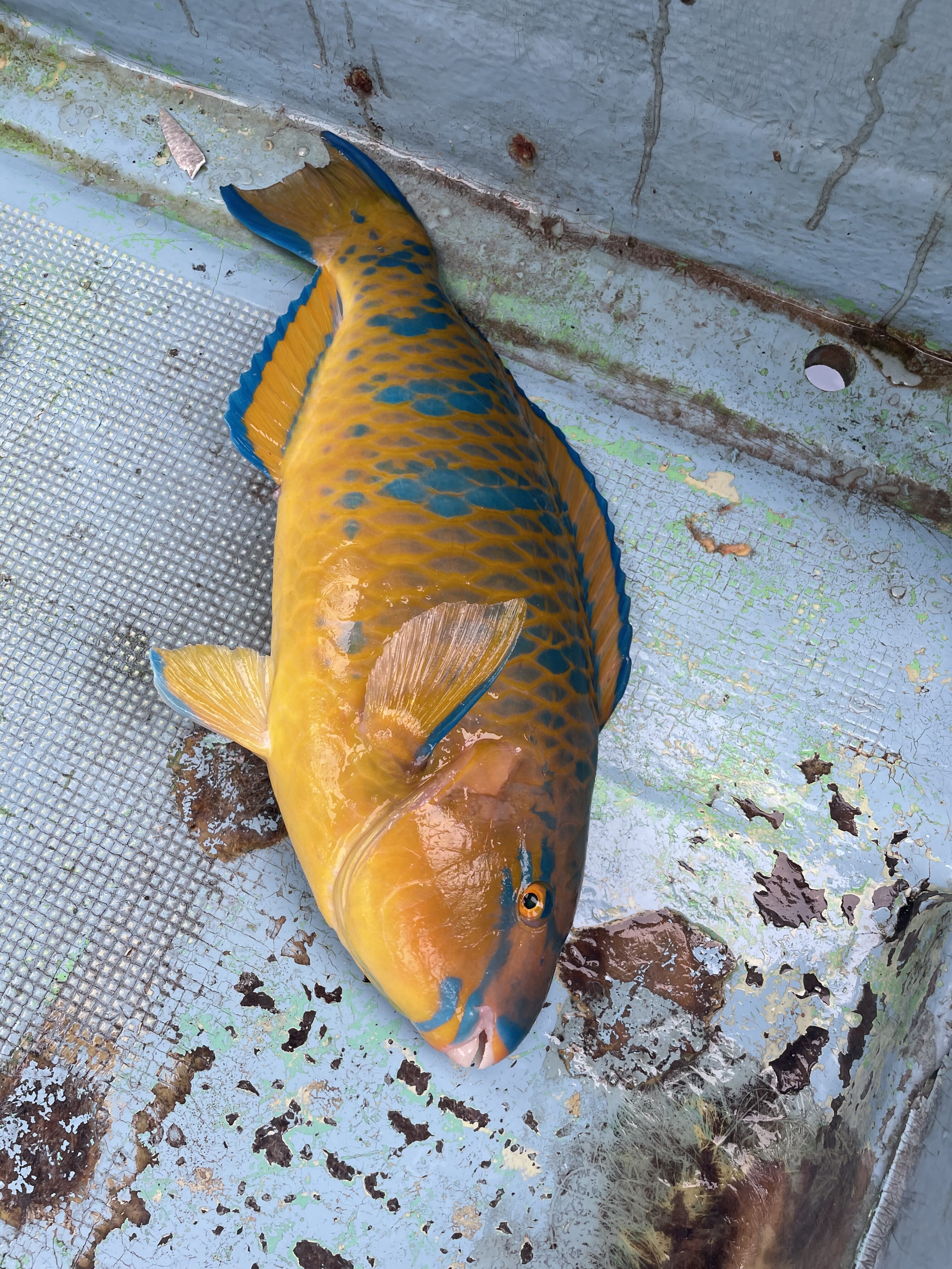 どうしようかと思っていたら、船長が生簀に以前釣っていたグルクンを入れていたそうなのでそれを使わせていただき泳がせ釣りスタート!