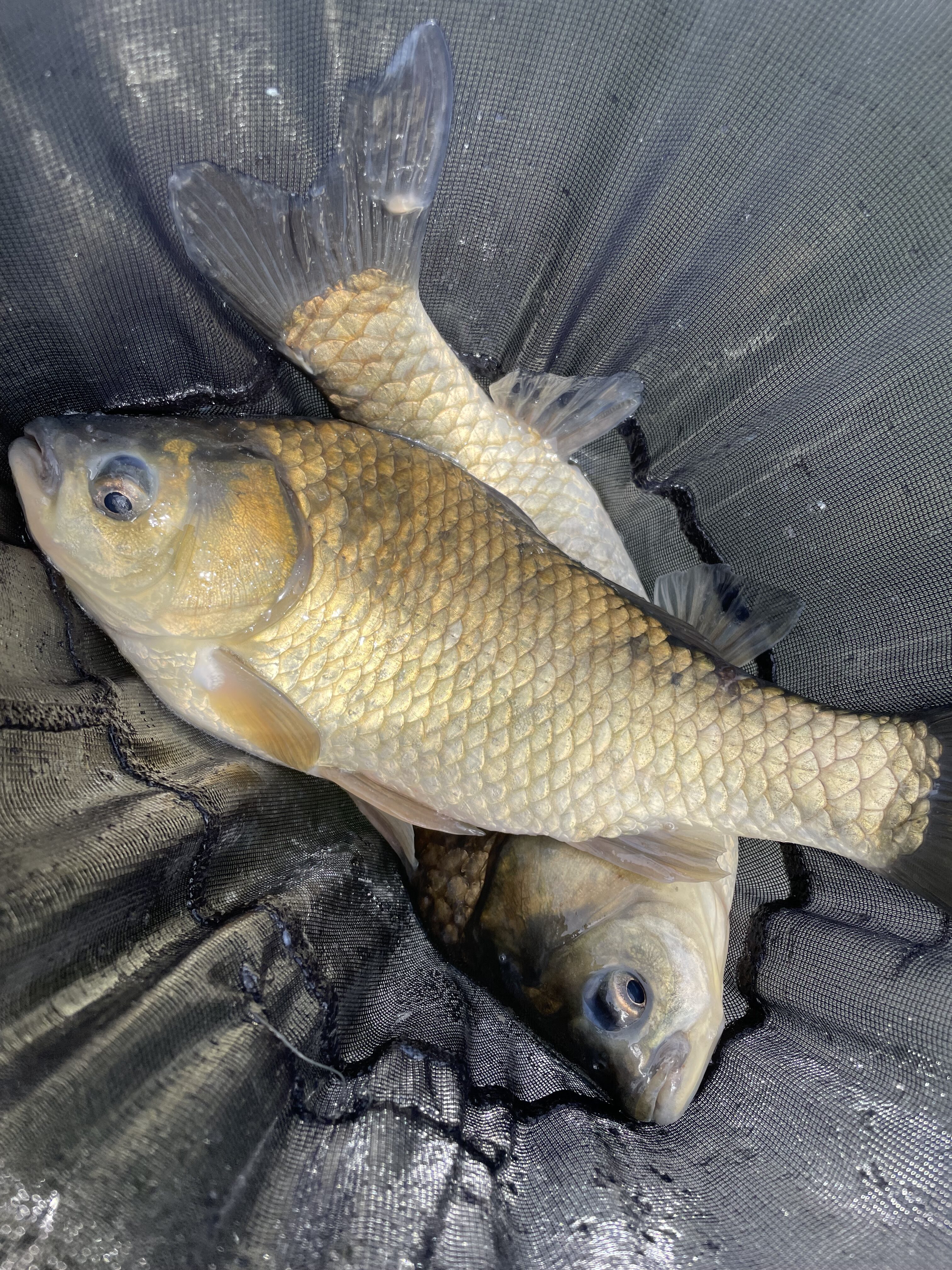 2025.06.16 印刷する 清遊湖にてハンドレッドチャレンジ! 魚種 ナマズ 数 124枚 場所 千葉県 天候 晴れ スタッフ 中村祐 店舗 柏店 釣行日 2025.06.09 コメント 柏店中村です! 今回は若手へら師のR君と清遊湖に行ってきました!久々の清遊湖!かなり釣れてるとの噂を聞くので楽しみです♪ 朝、清遊湖社長からハンドレッドチャレンジの指令を賜ったので、2人ともメーター両ダンゴでやってみます! 最近自分の中ではお決まりのエサ、カクシン400+カルネバ100+コウテン100+浅ダナ一本100+水250。 自分もそうなのですが、両ダンゴを持たせるのがちょっと苦手だなという方にもおすすめのブレンドです!水250なのでわりとヤワめで、作る際にかなりしっかり練るようにしてみてください!小分けにして、持たなければ折りたたんで練る。 セッティングは浮子がボディー7.5cm、ハリスは25-35が基本で、詰めても20-28まででした!ハリはバラサの7号! キモはヤワエサですがとにかくタナに入れていくこと!馴染んで一呼吸置いてのズバ消しで良い感じに釣れました! 13時頃無事100枚達成! 14時半早上がりで納竿で、トータル124枚!R君も100枚オーバーで、無事社長からのハンドレッドチャレンジの指令を2人ともクリアでした! 清遊湖さんかなり釣れてますのでぜひ遊びに行ってみてください♪ 使用した釣具 竿 シマノ 普天元独歩9尺 浮子 鏡月作 道糸 東レ 将鱗へらストロングアイ1.2号 ハリス 東レ 将鱗へらスーパープロプラス0.6号