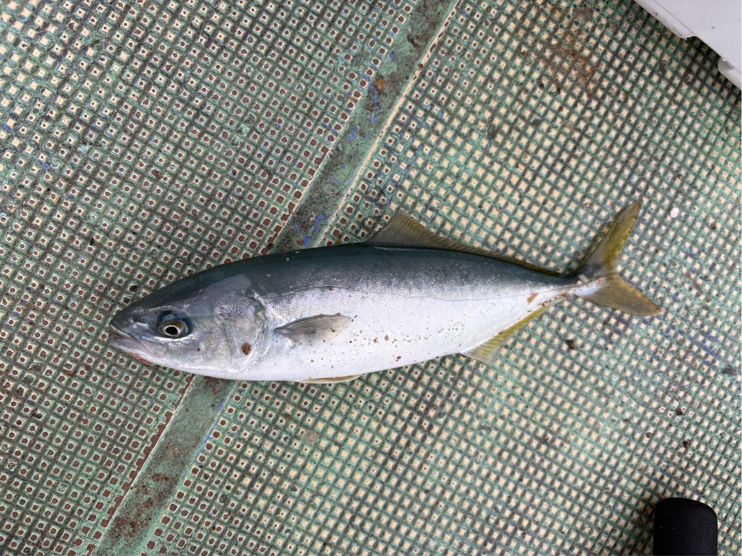 フォール中にラインが止まったので合わせます! ブルブル感あって小型青物の引きです。
