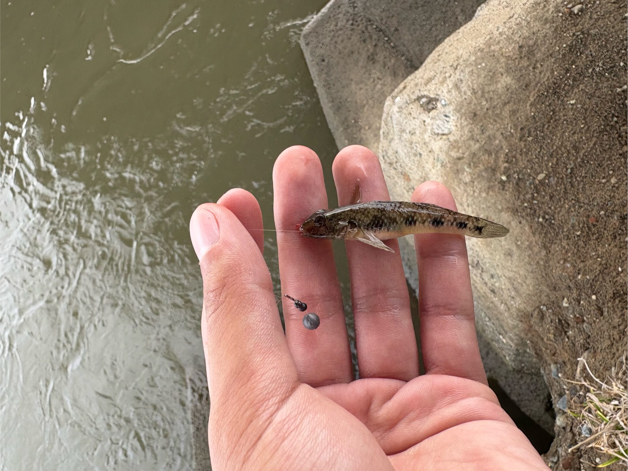 これはエビが岸ギリギリに逃げ込んでいるのを信じて釣るしかないな〜とやってみますが、小さいゴクラクハゼ2匹のみ。