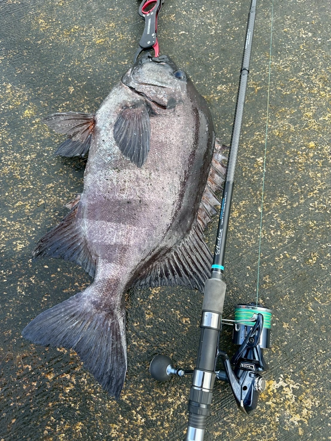 夕方のムール貝のかぶせ釣りで、同行者が特大の石鯛!