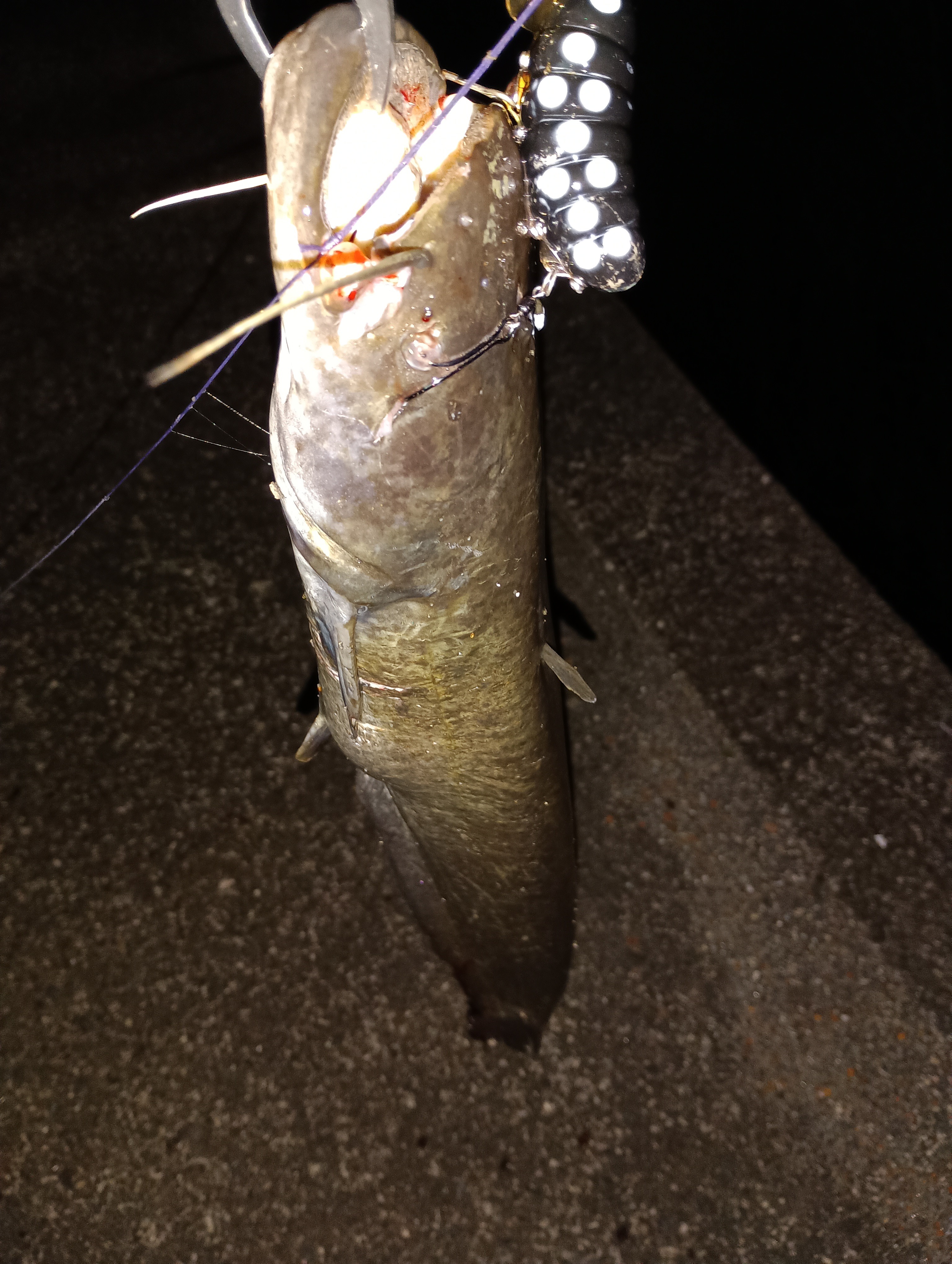 2025.06.23 印刷する 2025鯰釣行8 魚種 ナマズ サイズ 63cm 数 鯰 63cm 釣り方 ☆ナマズ 場所 京都府 天候 曇り スタッフ 松田 侑也 店舗 関西 京都 伏見店 釣行日 2025.06.18 コメント 今期8回目の鯰釣行。 前回、久しぶりに行った水路で推定70cmオーバー見かけたので、その用水路の大元になる水路に行ってきました。 割と足場が高く、魚を掛けても無理やり抜くには怖い高さなのと、平坦なポイントに下りられる所も少ないので、もう何年振りか分からない位久しぶりに来ましたが、そこまで変わっていませんでした。 岸際に投げたいところですが、雑草ジャングルと化しているので、なかなか際ギリギリ攻めるのが難しく、キャスト上手く決まっても、やる気のないバイトのみ・・・ 割とスレていないのか、バイト自体は結構ありましたが、乗せられるバイトなく、何とか1匹絞り出しに成功! 痩せていましたが63cm。 この日はこの魚が獲れたタイミングで納竿としました。 数はそこまでいなさそうですが、割とサイズは良さそうなので、また調査に行きたいと思います。 使用した釣具 ロッド エクストリーム エルホリゾンテ78 リール シマノ カルカッタ400 ルアー スミス キャタピーⅡ