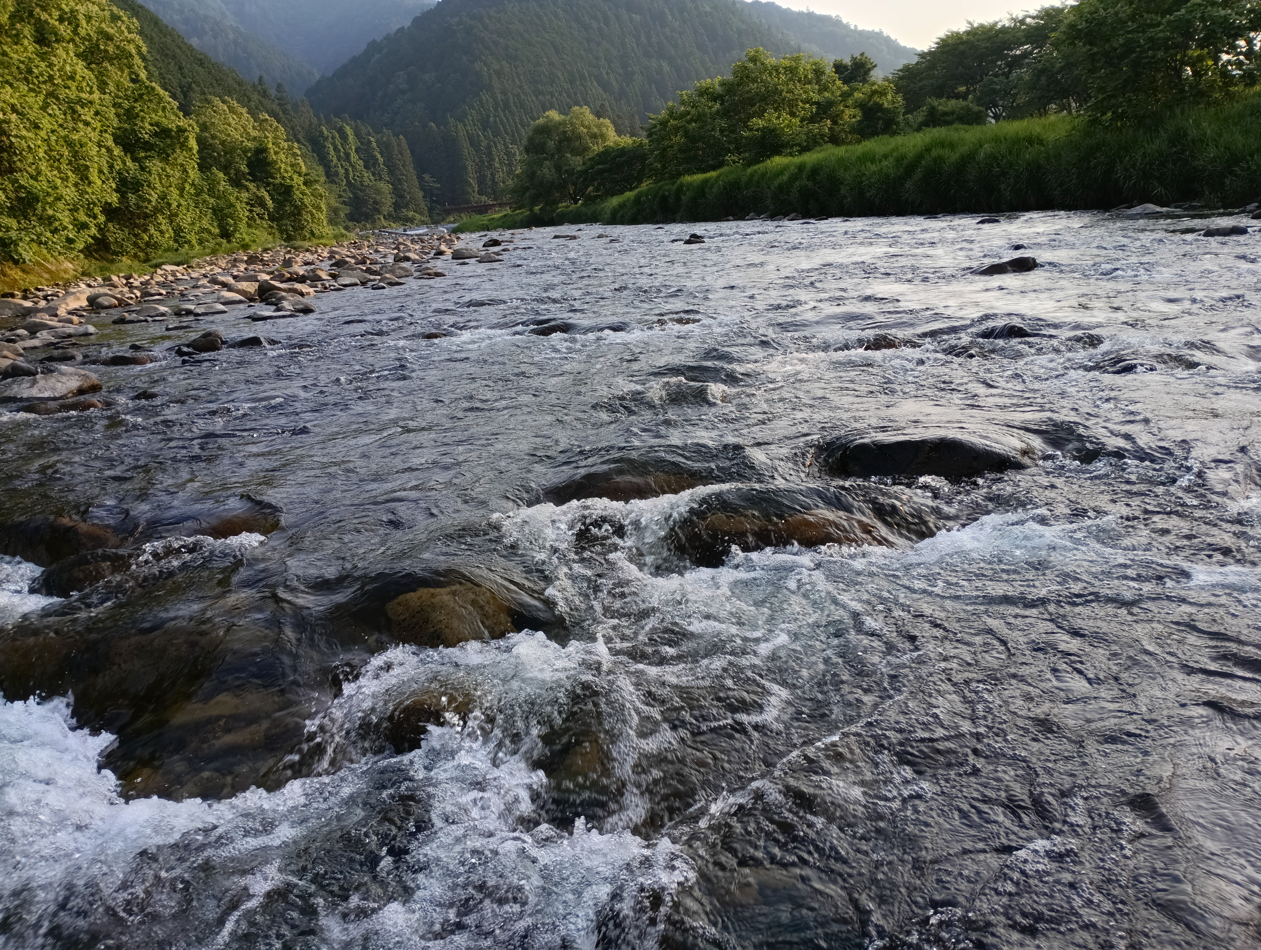 時間は17時前。歩いてきた川を上り、トロで鮎が跳ねていました。