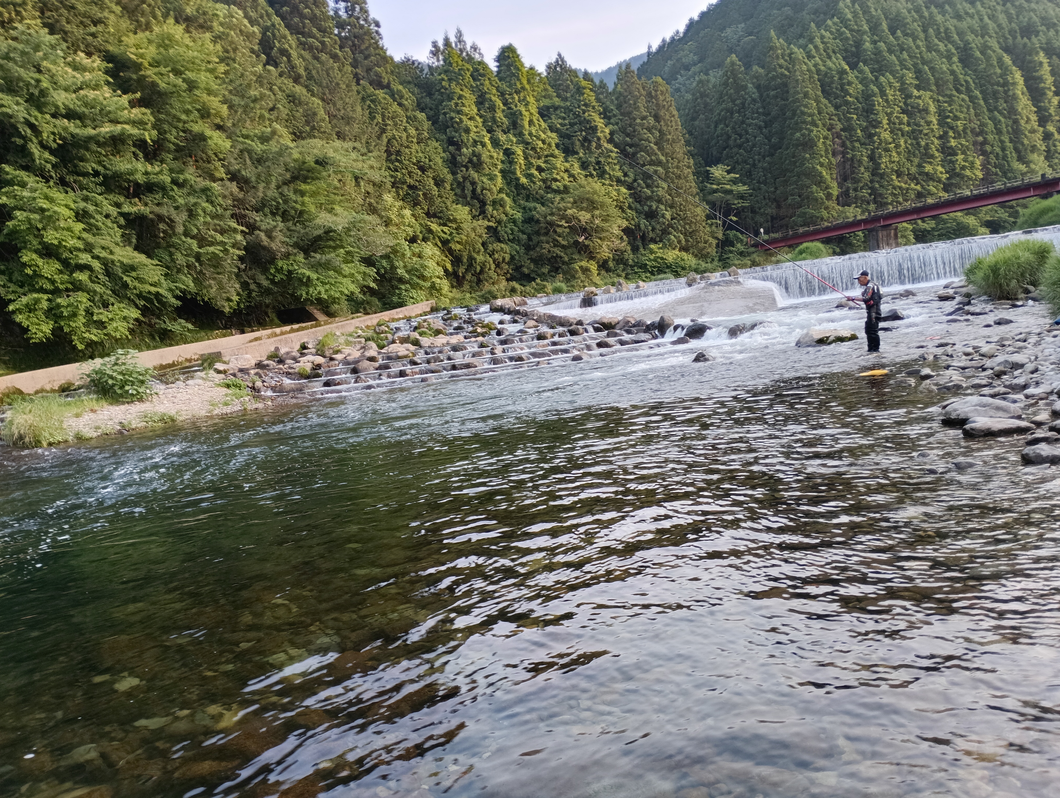 また下って、だんだん瀬の中ほどでスペースがあったので竿を出しますが反応ゼロ。