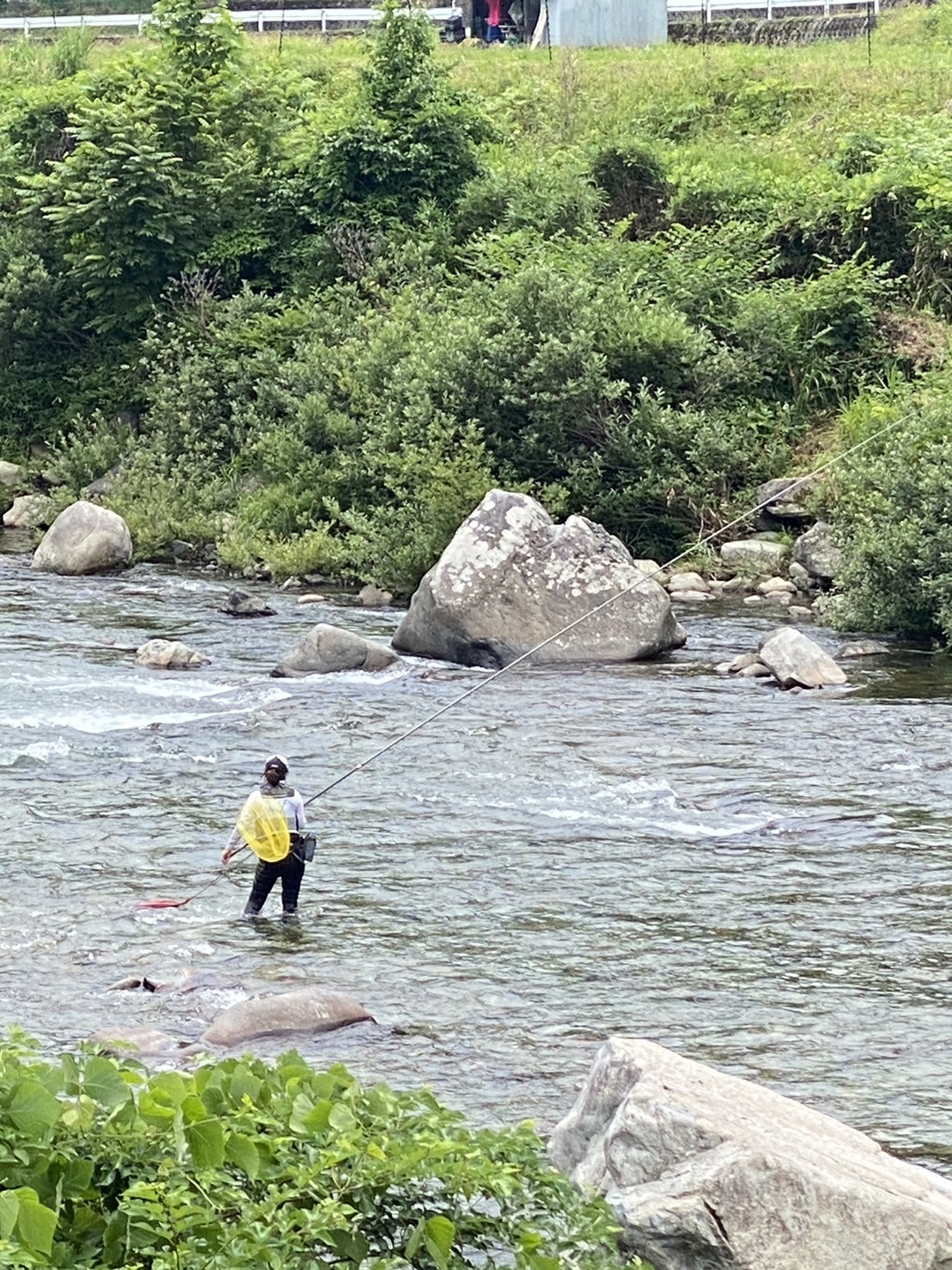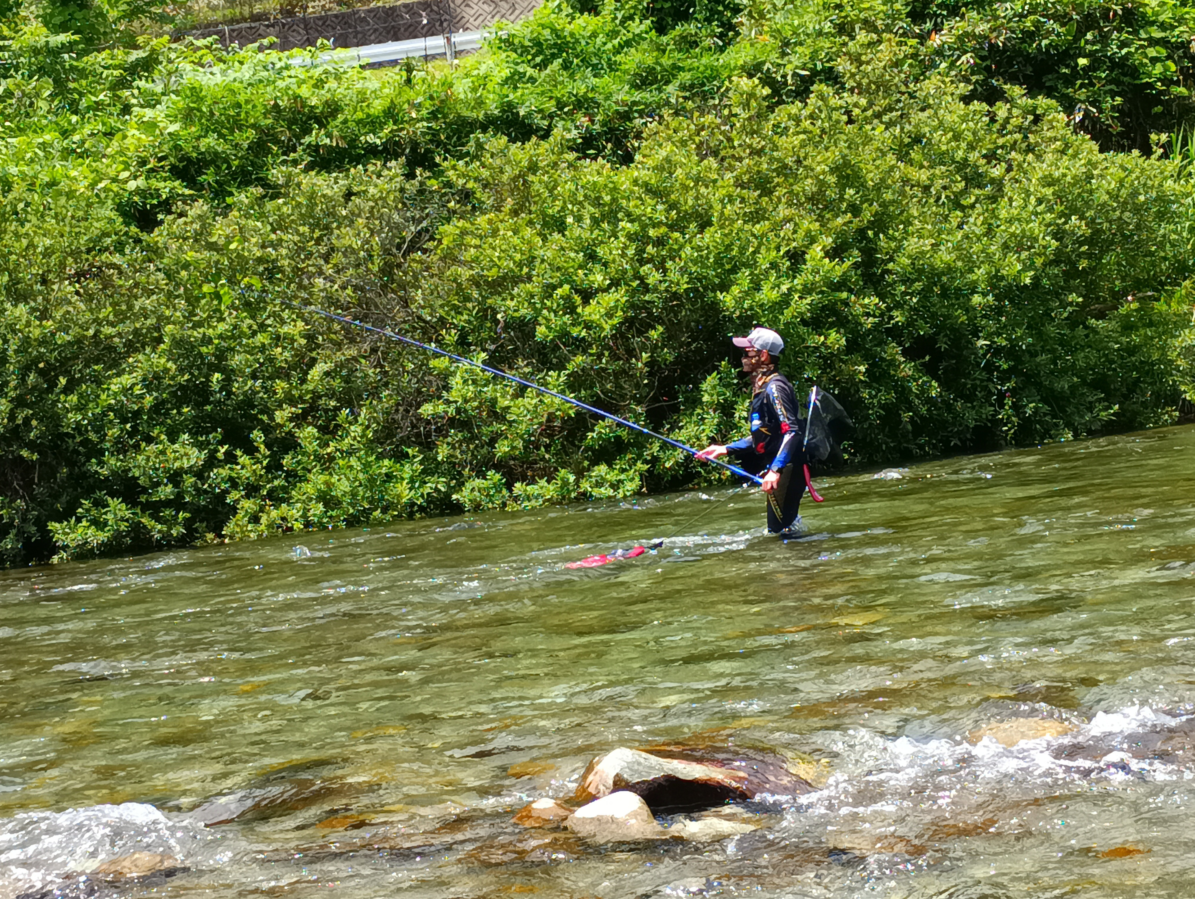川を下る際にみていると、そこ、ここで魚を掛けておられました