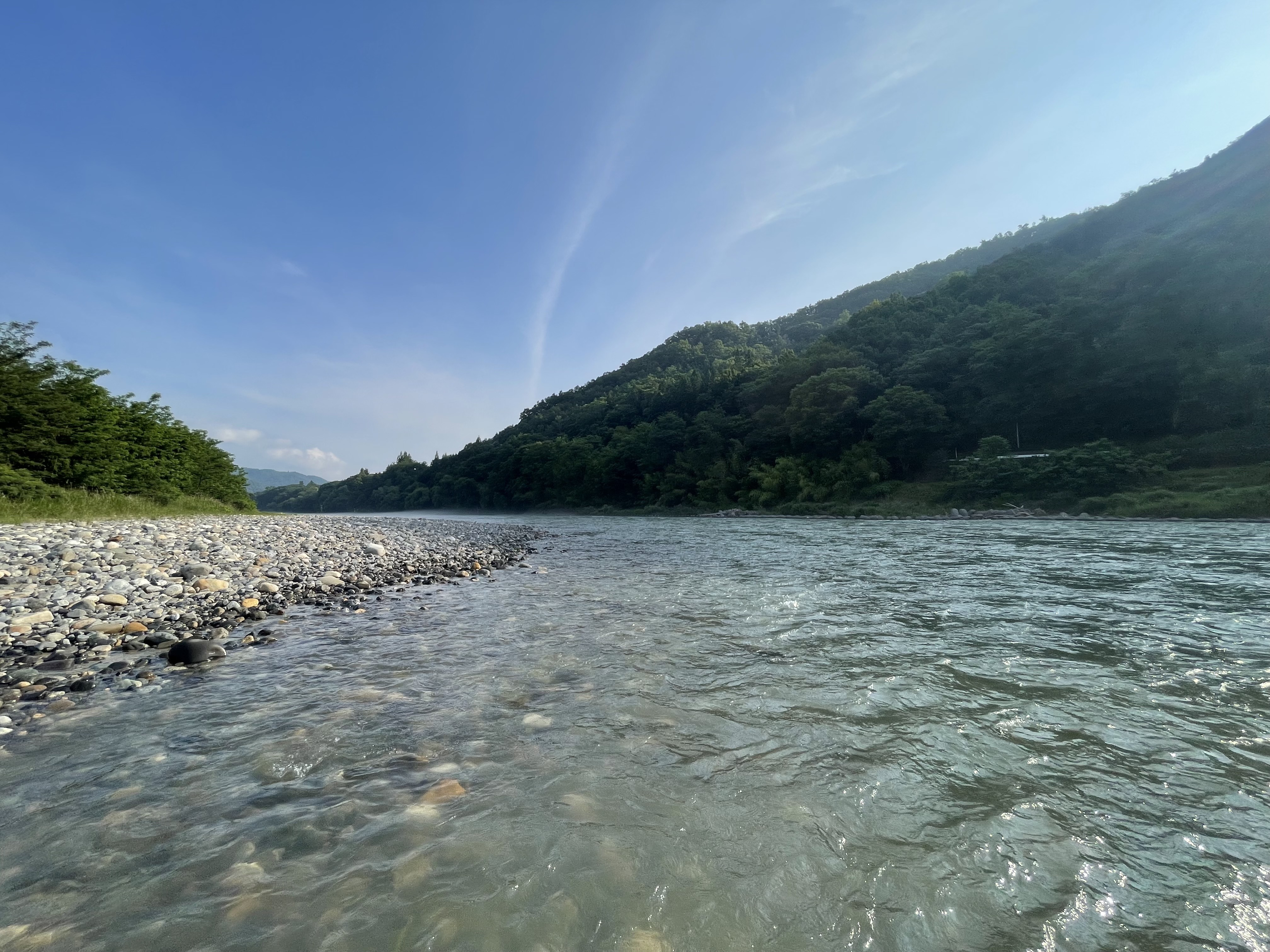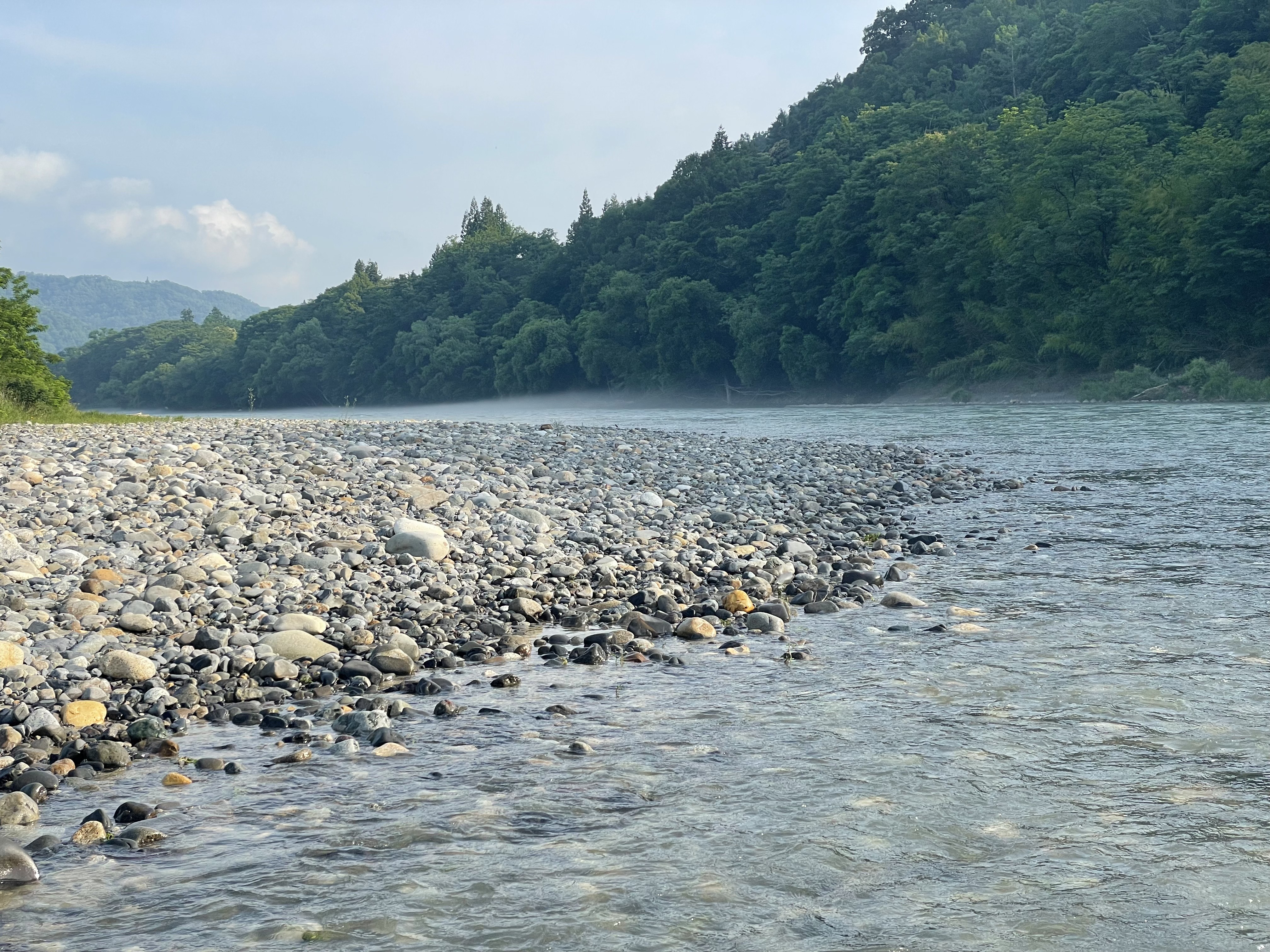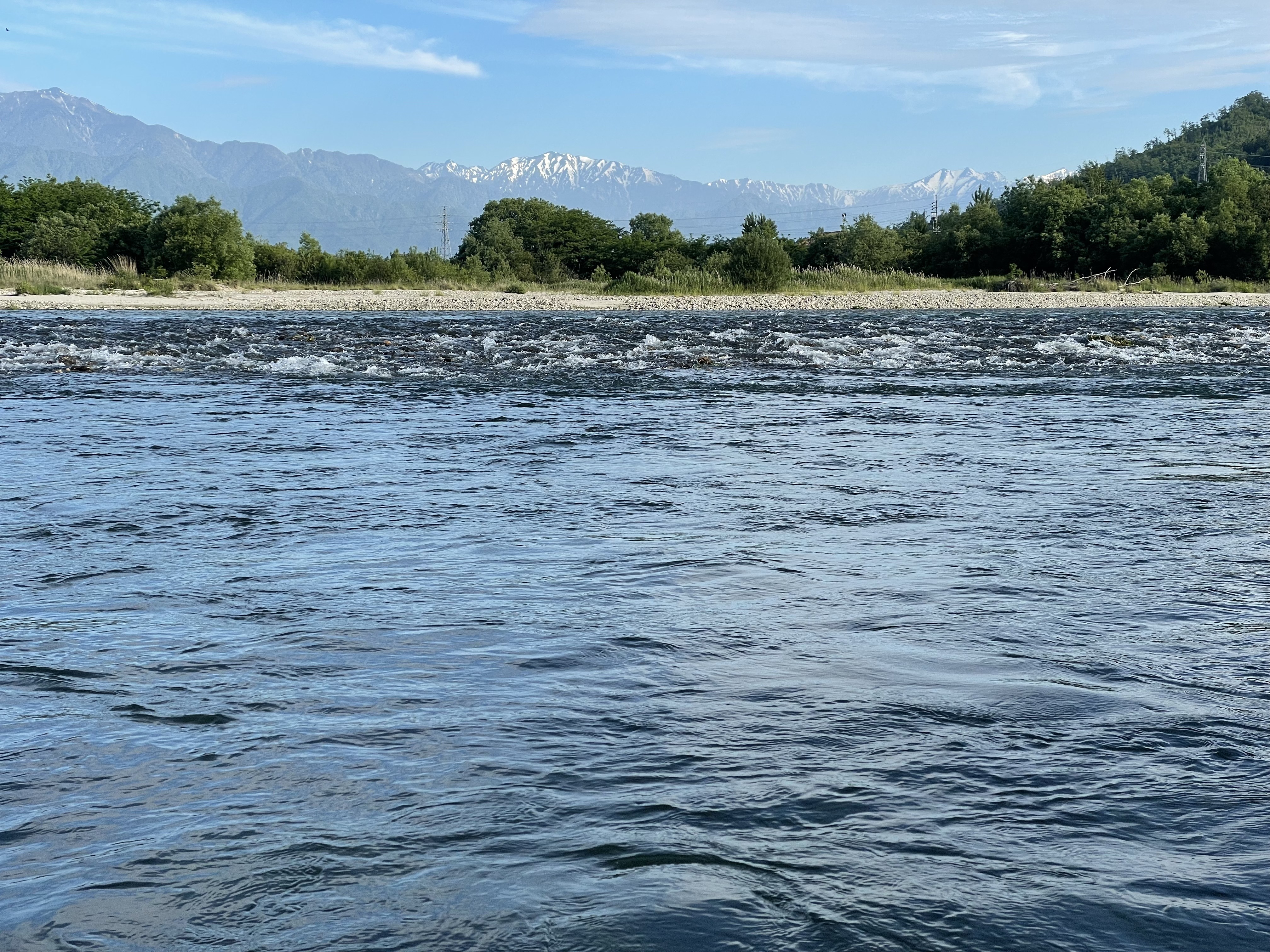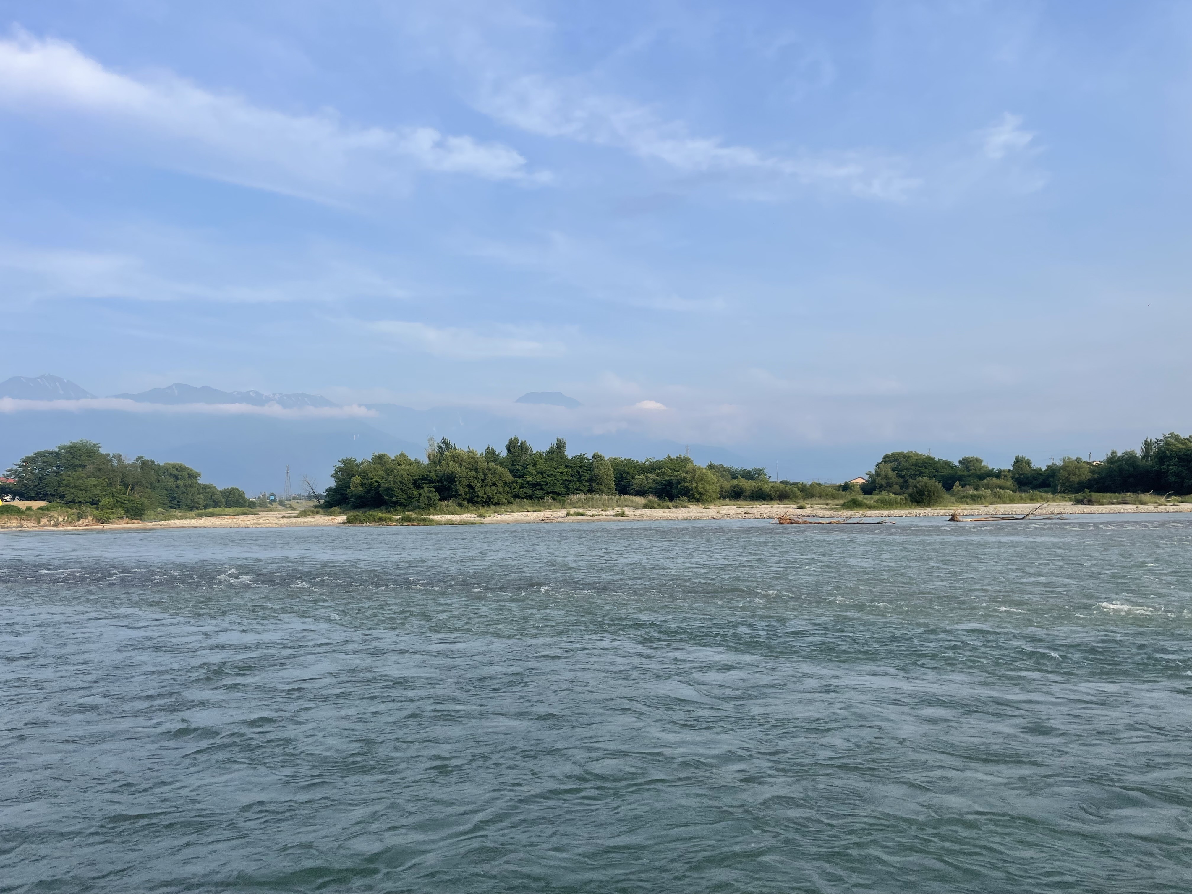 3ヶ所ほど回って何処も濁りと増水で厳しく犀川殖産エリアへ。ここもさらに濁りが強く川底に砂も堆積も多くダムの排出も多そうなで犀川殖産にも見切りをつけて移動。どの主要河川濁りが強く、ここ数日の猛烈な暑さで雪代が流れ込んだか?