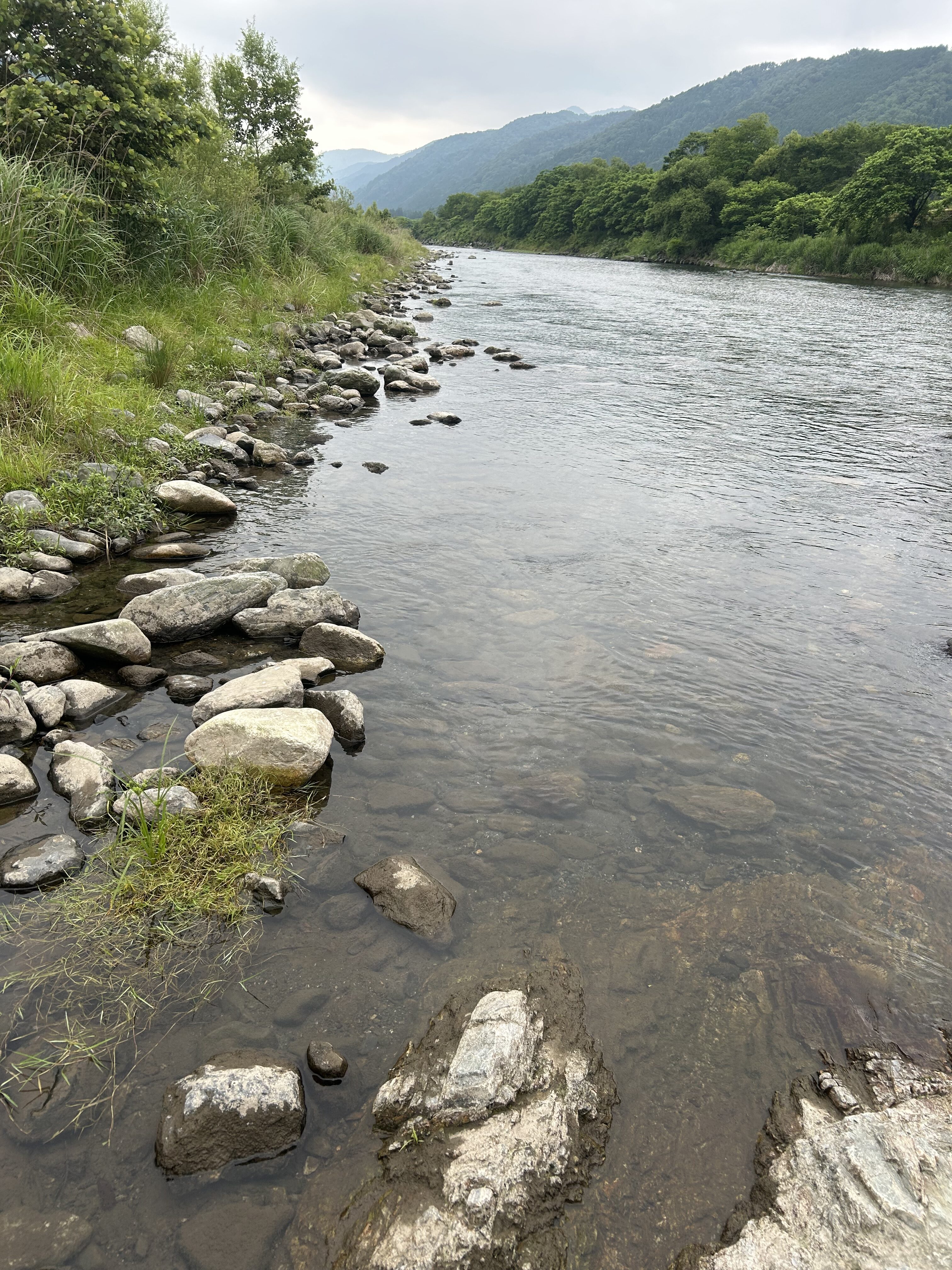 朝6時位に村上オトリ店さん到着、曇り空、涼しい。そして1番乗り。早すぎたか。でも川を前にのんびりはしていられないので入川!前日のブログで、平均20匹の釣果が上がってたので、楽しみです。