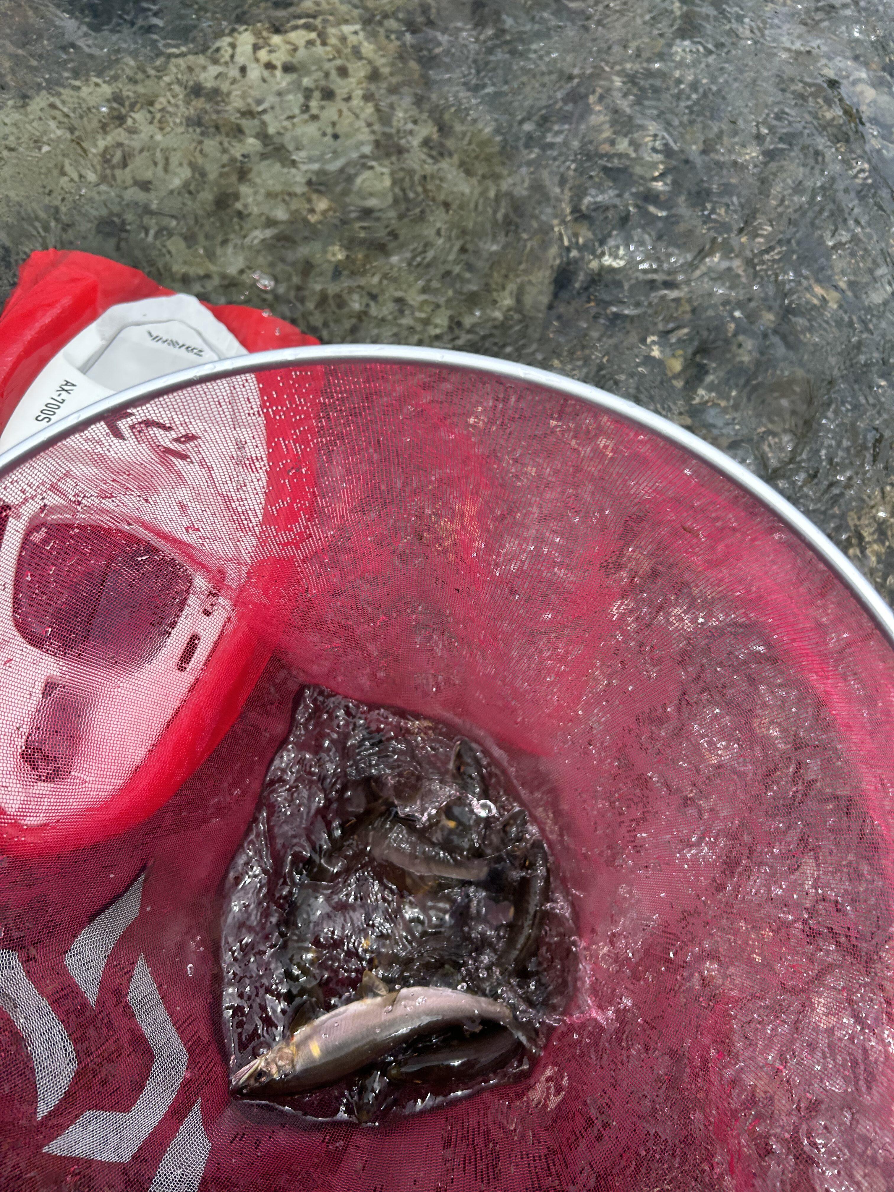 さらに降って水管橋下の瀬でポロポロと15センチ位の鮎を掛けて、また村上オトリ店さん前を次は上に昇り上の瀬で1匹、またさらにその上のチャラ瀬で1匹と、拾い釣りでした。村上オトリ店さん前は他の釣り人も多く移動も困難になってきて、自分の体力もなかなか厳しかったので帰宅…。午前は全く晴れ間が無く、陽がささなかったのも釣果に影響があったのかもしれません。また行って来ます。