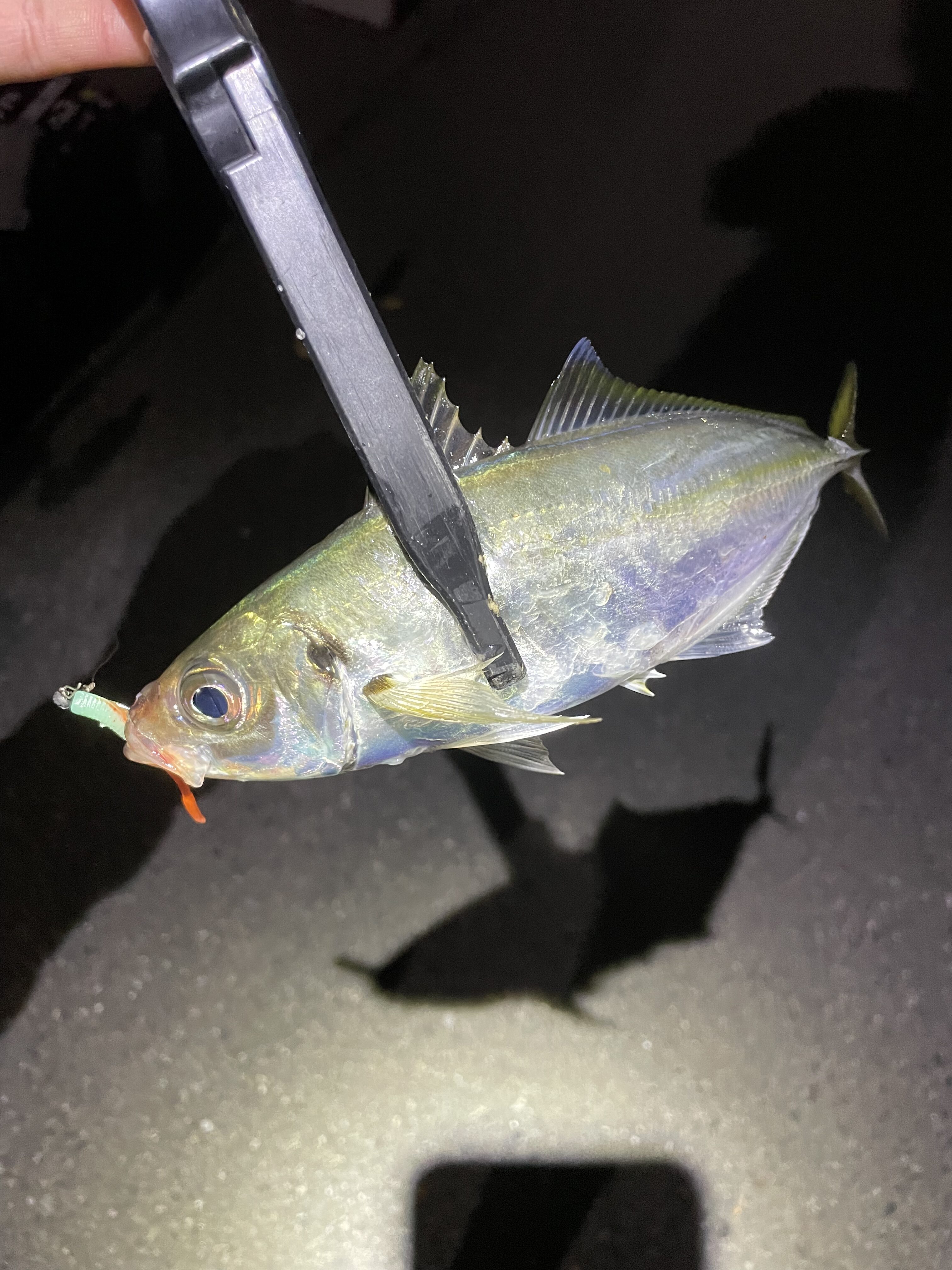 2025.06.30 印刷する 水中は初夏な雰囲気?泉南フロートアジング 魚種 アジ サイズ 23センチ 数 アジポロポロ 釣り方 ☆アジング 場所 大阪府 スタッフ 平田 真奈生 店舗 本社 釣行日 2025.06.21 コメント 梅雨ってなんですか? ってくらいに今年も雨が少ない🤨 今週も行ってきました毎度お決まり泉南へいつもの仲間と玉転がし🥚 南風7mでポイントは限られてきますがとりあえず行ってみることに、 入りたかったポイントは先行者ありで入れず、少し北に上がってやったことないポイントに エキスパンダで広範囲に探っていくと70〜80mくらい先でヒットしますがバラシ😅 沖は横風吹いててラインがふけてるせいもあり上手くフッキングが決まらない😔 コンスタントに当たってきますがフッキングしたと思っても手前のブレイクを越えるためにゴリ巻きすると口切れしてそうな感じのバラシ… 1時間半くらいノーキャッチで頭に浮かぶ「ボウズ」の3文字 フックサイズを少し落として高実績のハンポワブーティーを装着 フルキャストした先で風で流してドリフトさせていくとヒット! 23センチの良型🐟 その後も掛けられないアタリに苦戦し納竿となりました🎣 また行ってきまーす♪ 使用した釣具 ロッド メビウス79M リール 19ヴァンキッシュ2500SHG ライン PE0.6号 リーダー フロロ8lb