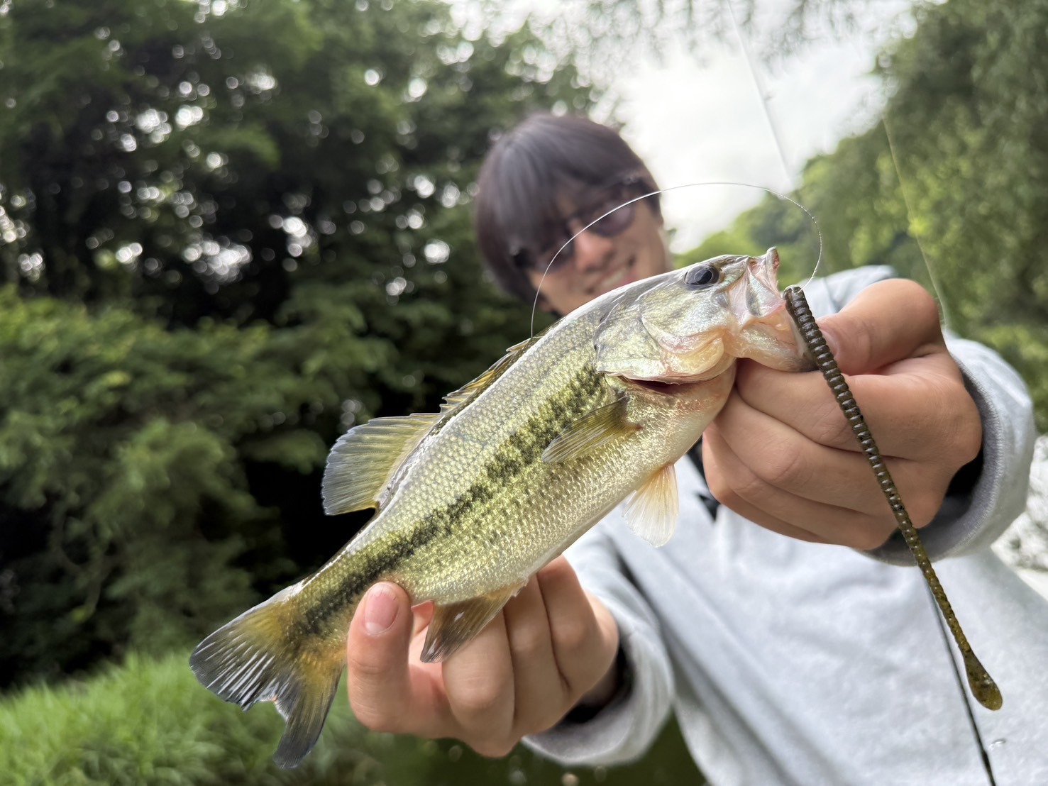 そんな中、スタッフ中谷がフリーリグでいいサイズのバスをキャッチ!